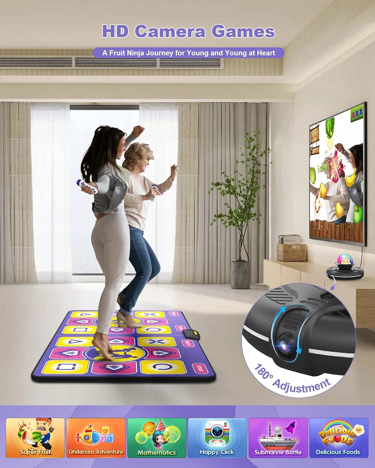 Фланелевой танцевальный коврик Acelufly для телевизора, танцевальный коврик для взрослых и детей для двоих, противоскользящий танцевальный коврик для девочек и мальчиков (фиолетовый + желтый)