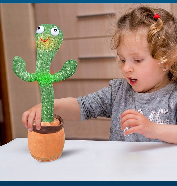 Кактус, который может петь, танцевать, а также «попугай», услышав слова, это хороший талисман. У игрушки много разных песен, танцы очень забавными, и когда танец ее туловища сияет в различных цветах диско. У него большие глаза, смешное выражение, а позади вас повторяется, как попугай! Игрушка изготовлена из ткани и кактуса с приятным плюшем.