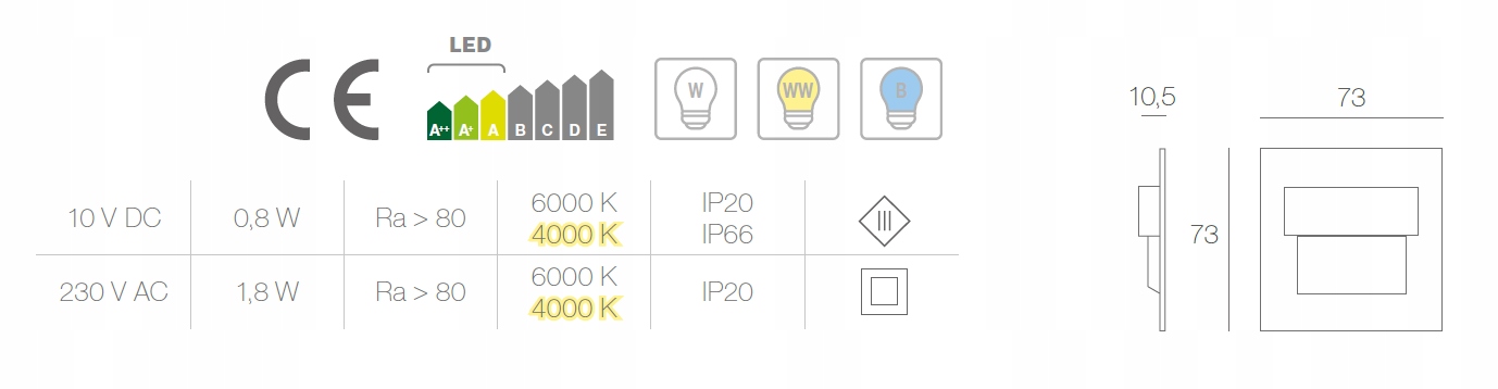 Благодаря используемому светодиодному источнику света данные светильники излучают минимальное количество тепла. Благодаря этому их можно использовать непосредственно на легковоспламеняющихся элементах, таких как: мебельные щиты, деревянные элементы.