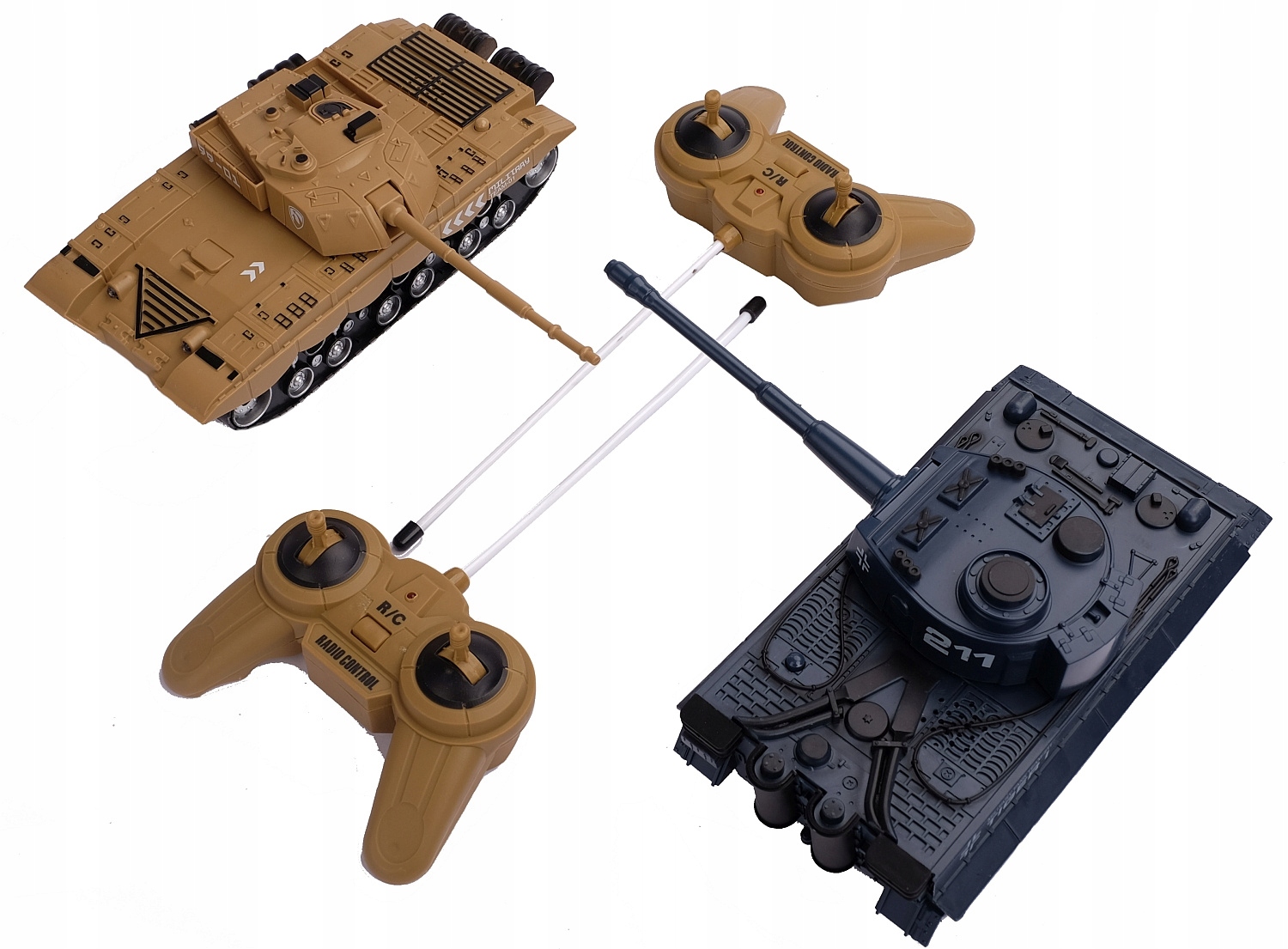 Танки имеют резиновые колеса, благодаря тому, что они очень быстрые (и тихий в игре на полу)! Реалистичные боевые звуки и легкие эффекты. Вы запускаете снимки с помощью кнопки на пульте дистанционного управления. Светодиодные фонари на передней части каждых резервуаров.