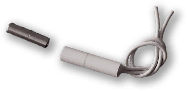 Двухпроводной магнитный контакт меньшего размера, предназначенный для утопленного монтажа в окнах, дверях и т. д.