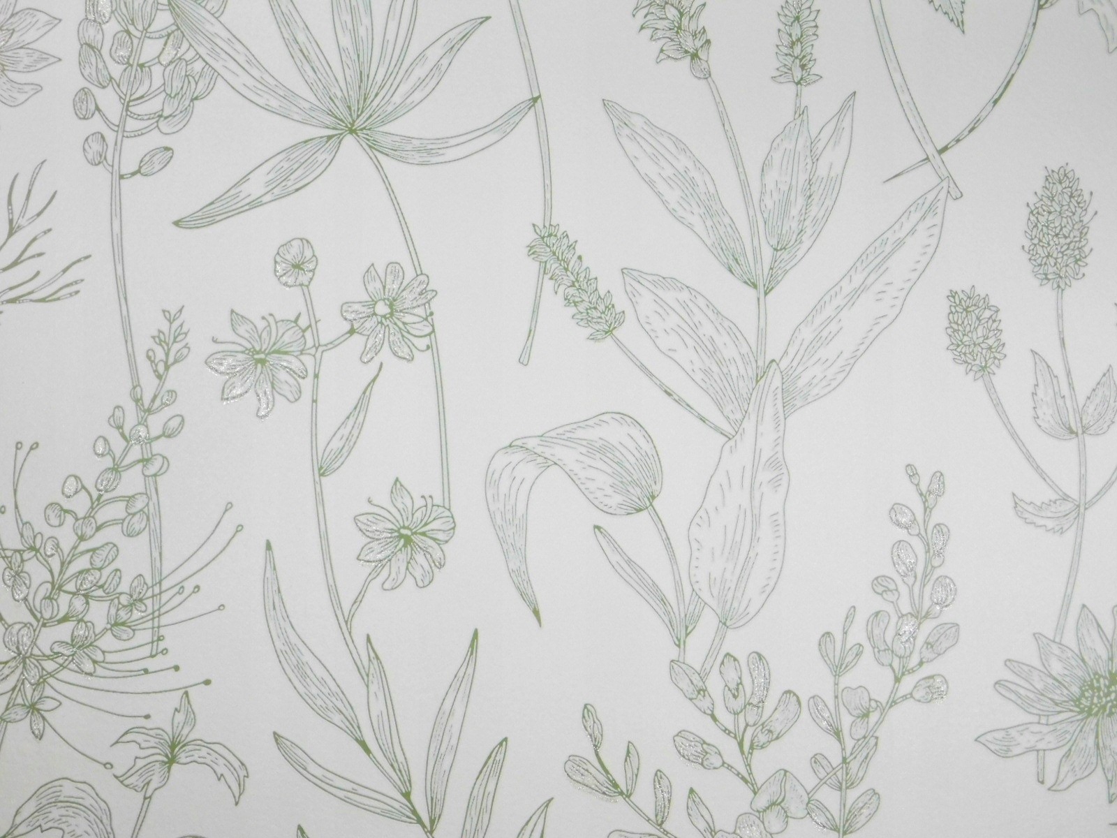Tapeta Biała Oliwkowa Zioła Zielnik Polne Kwiaty Tapety Zmywalne