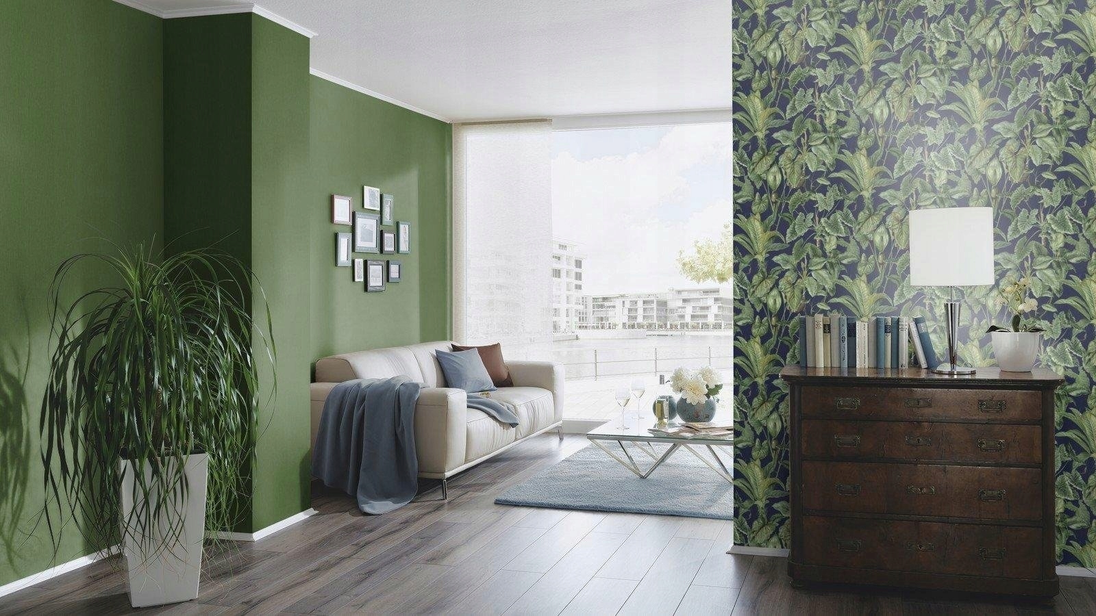 - Обои со скандинавским узором, изображающим листья монстеры, идеально подходят как для современных, так и для более классических интерьеров