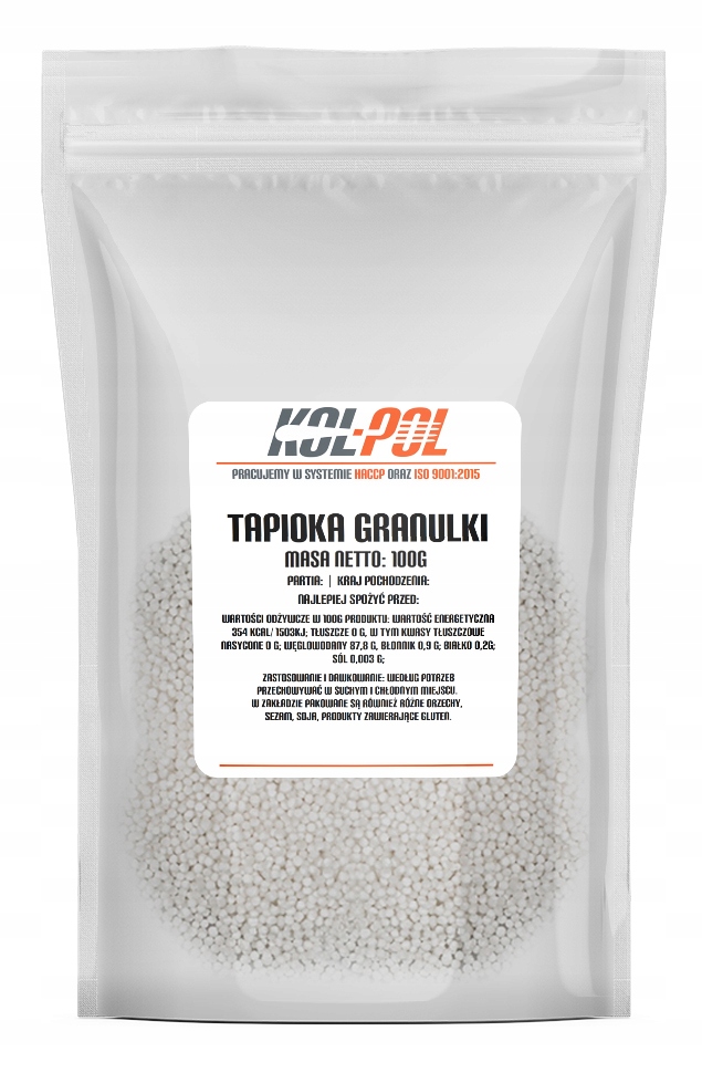 Тапиока родом из Южной Америки, где ее получают из корня маниоки. Имеет нейтральный вкус и запах, поэтому его используют как ингредиент как сладких, так и соленых блюд. Жемчуг тапиоки используется для приготовления десертов – пудингов, коктейлей или популярных напитков из пузырькового чая, супов, соусов и основных блюд в качестве крахмальной добавки. Это легкоусвояемый продукт. После приготовления шарики тапиоки набухают и становятся прозрачными.