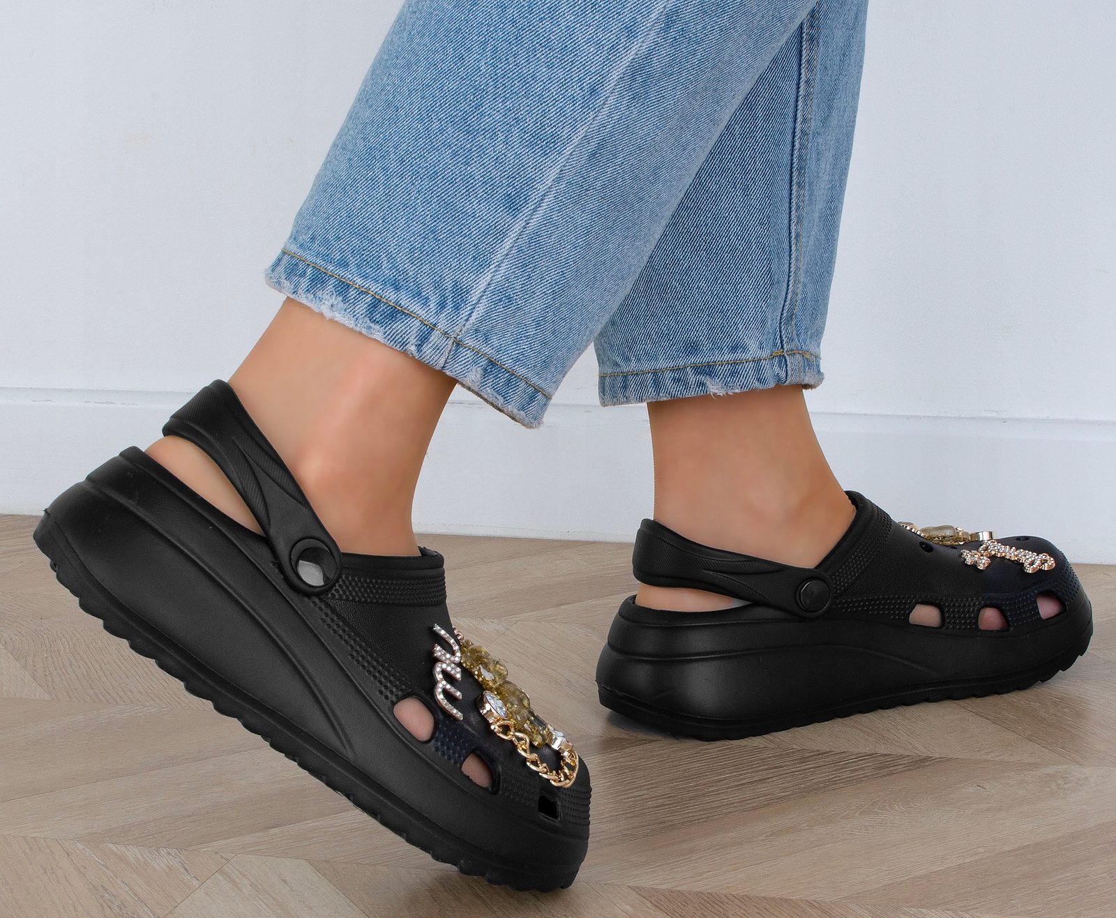 8829 Черные шлепанцы украшают украшения платформы 38-39 h1>