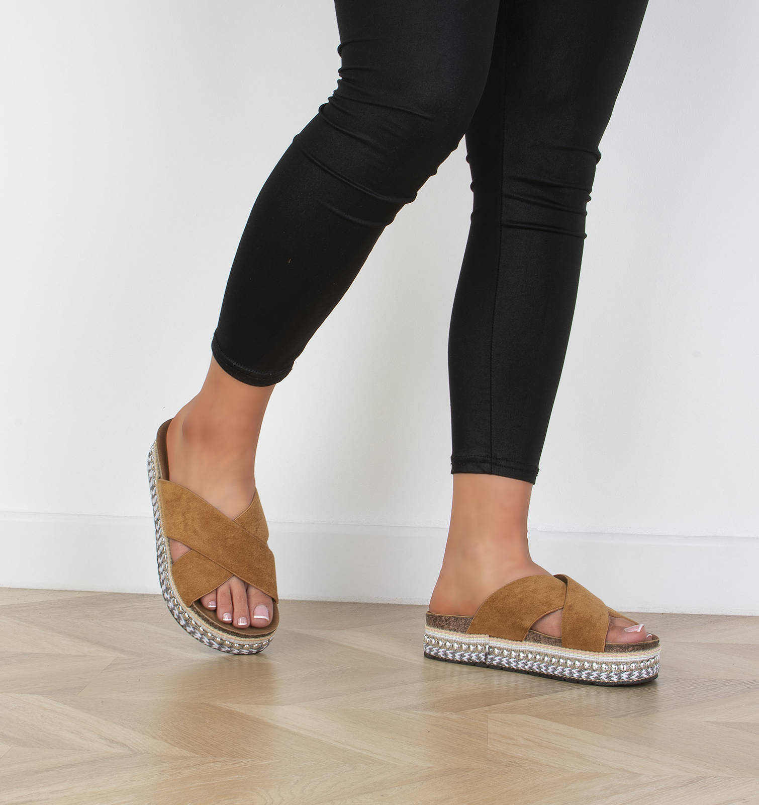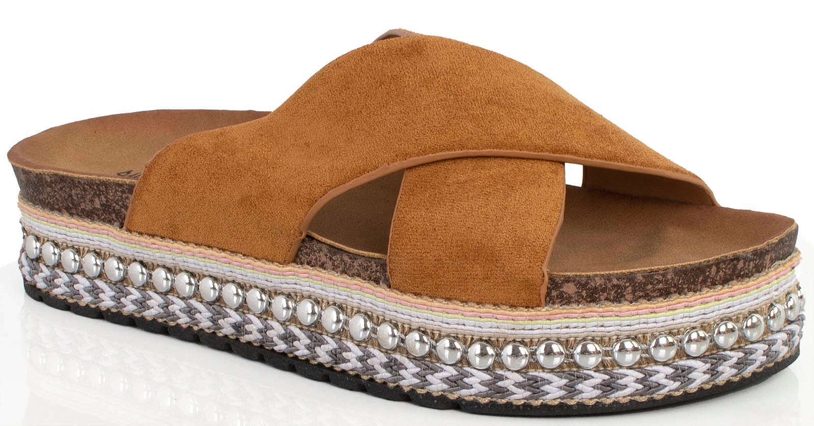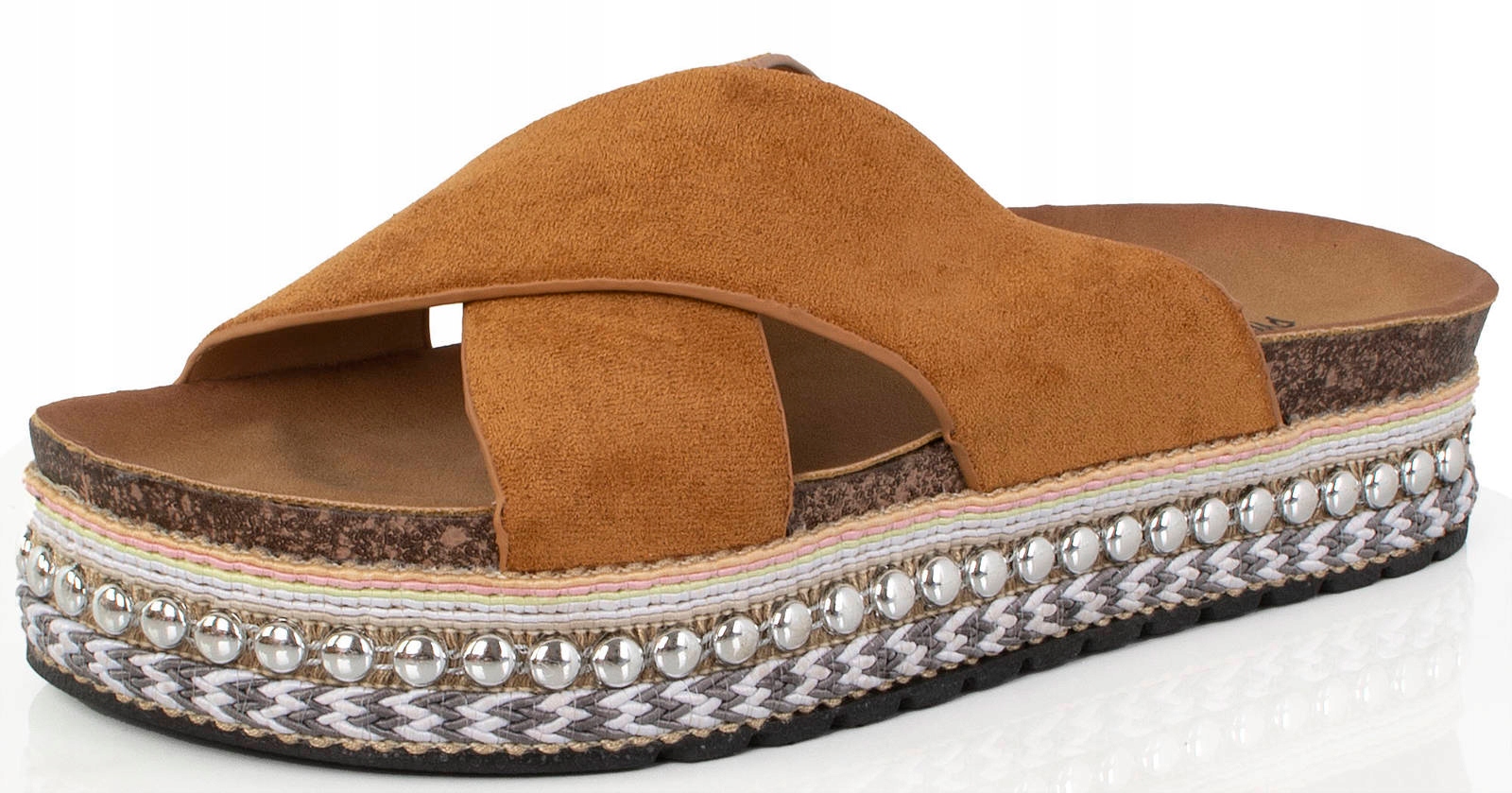 7363 ТАПОЧКИ НА ПЛАТФОРМЕ CAMEL С ЗАМШЕВЫМИ ПОЛОСАМИ 38