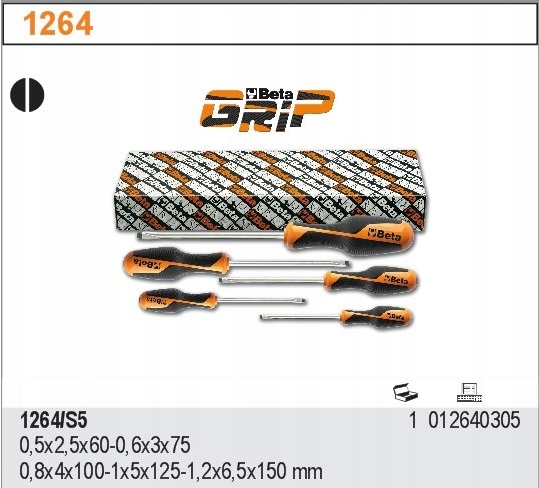 набор плоских отверток Betagrip 1264, 2,5x60-6.5x150 мм, 5 штук, в бета-картон h1> Модель 1264/ S5 h2>