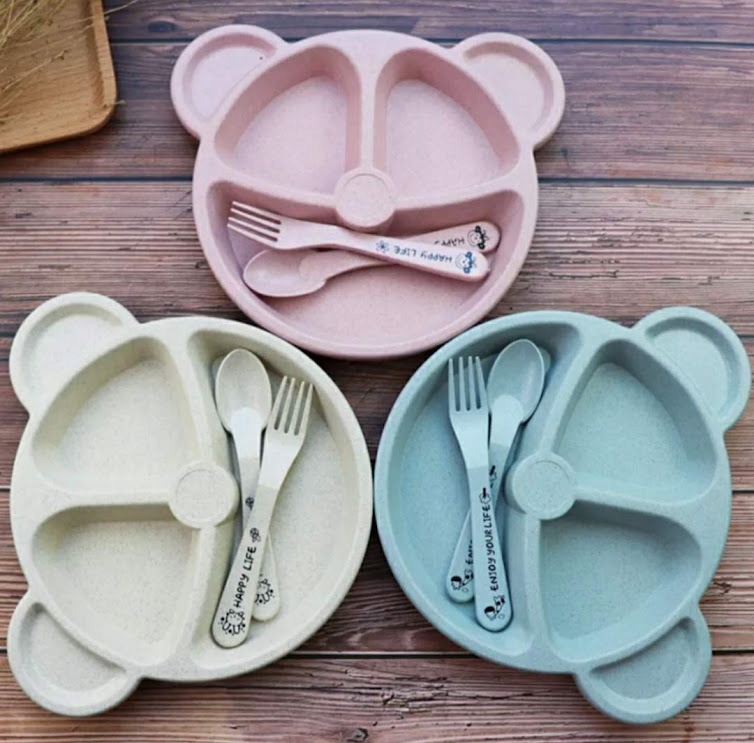 - большая тарелка/миска разделена на 3 части, чтобы продукты не смешивались.