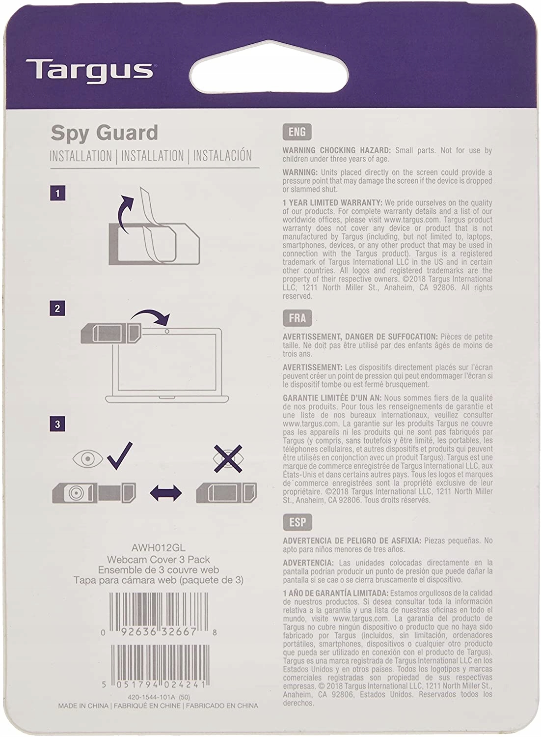 Защитите себя с помощью трех чехлов для веб-камер Targus Spy Guard. Даже федеральные агентства рекомендуют закрывать веб-камеру вашего ноутбука. После подключения он останется на месте. Он легко открывается и закрывается, что упрощает доступ к веб-камере, когда вы готовитесь к видеоконференции или виртуальной встрече. Блокировка хакеров не может быть проще.