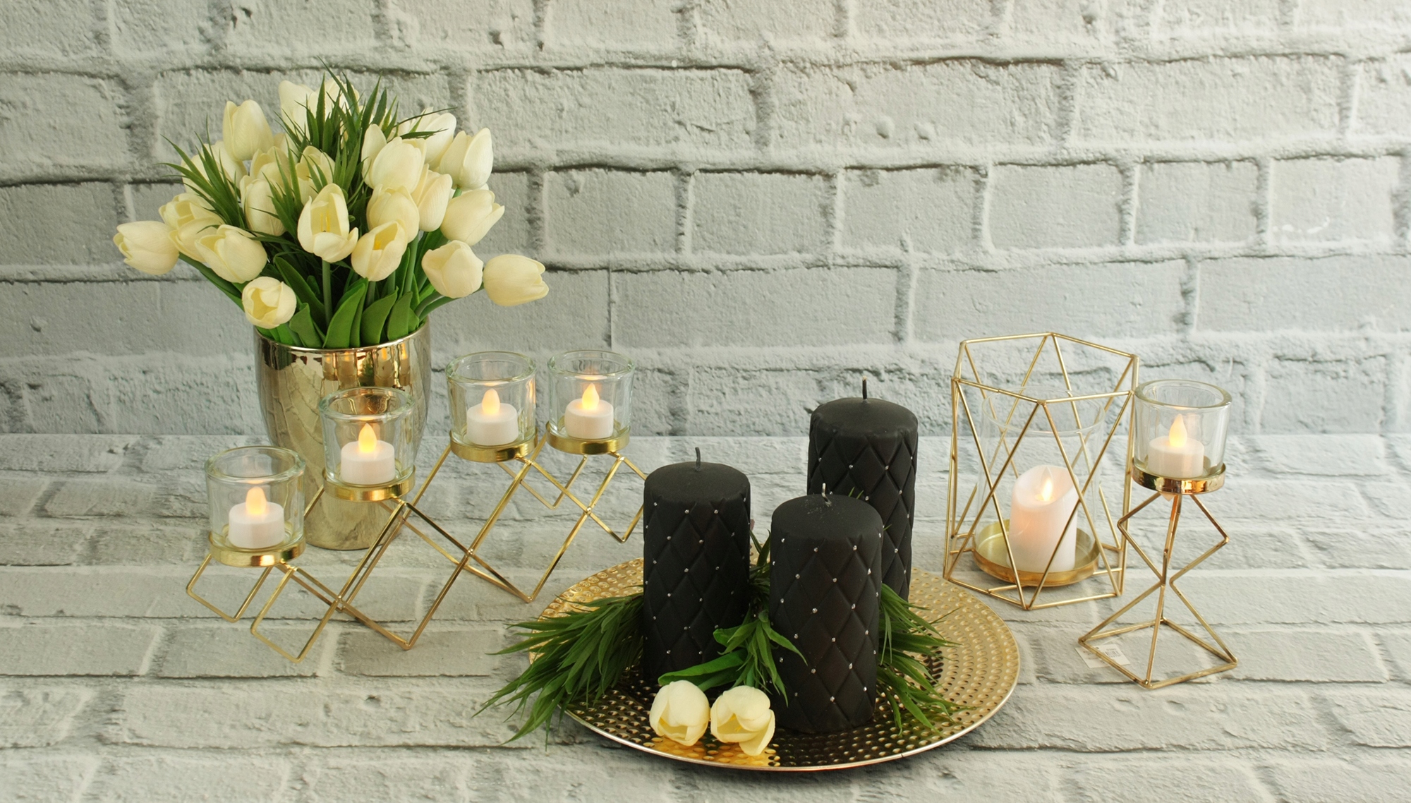 Декоративная тарелка - черная тарелка - золотой геометрический узор