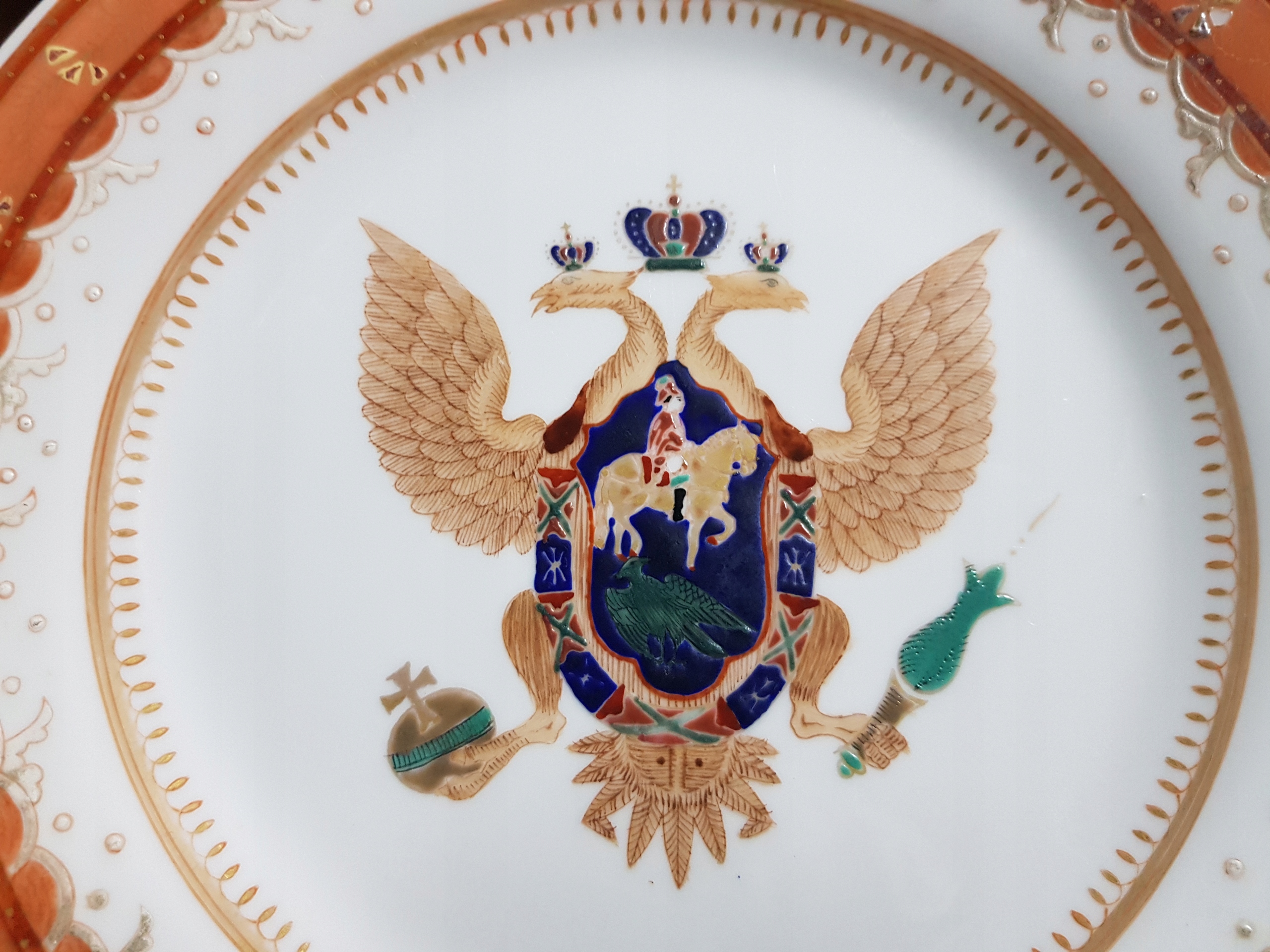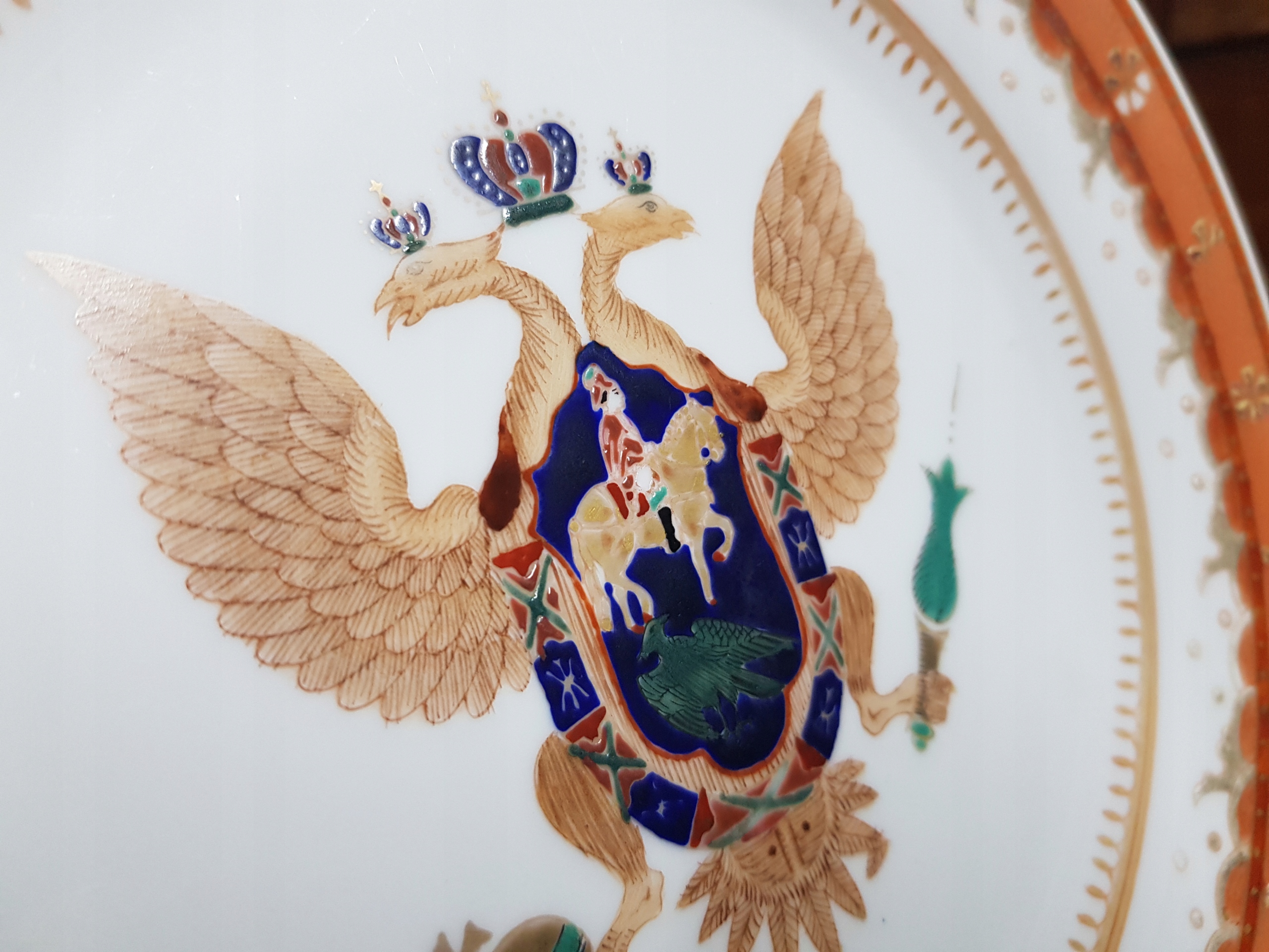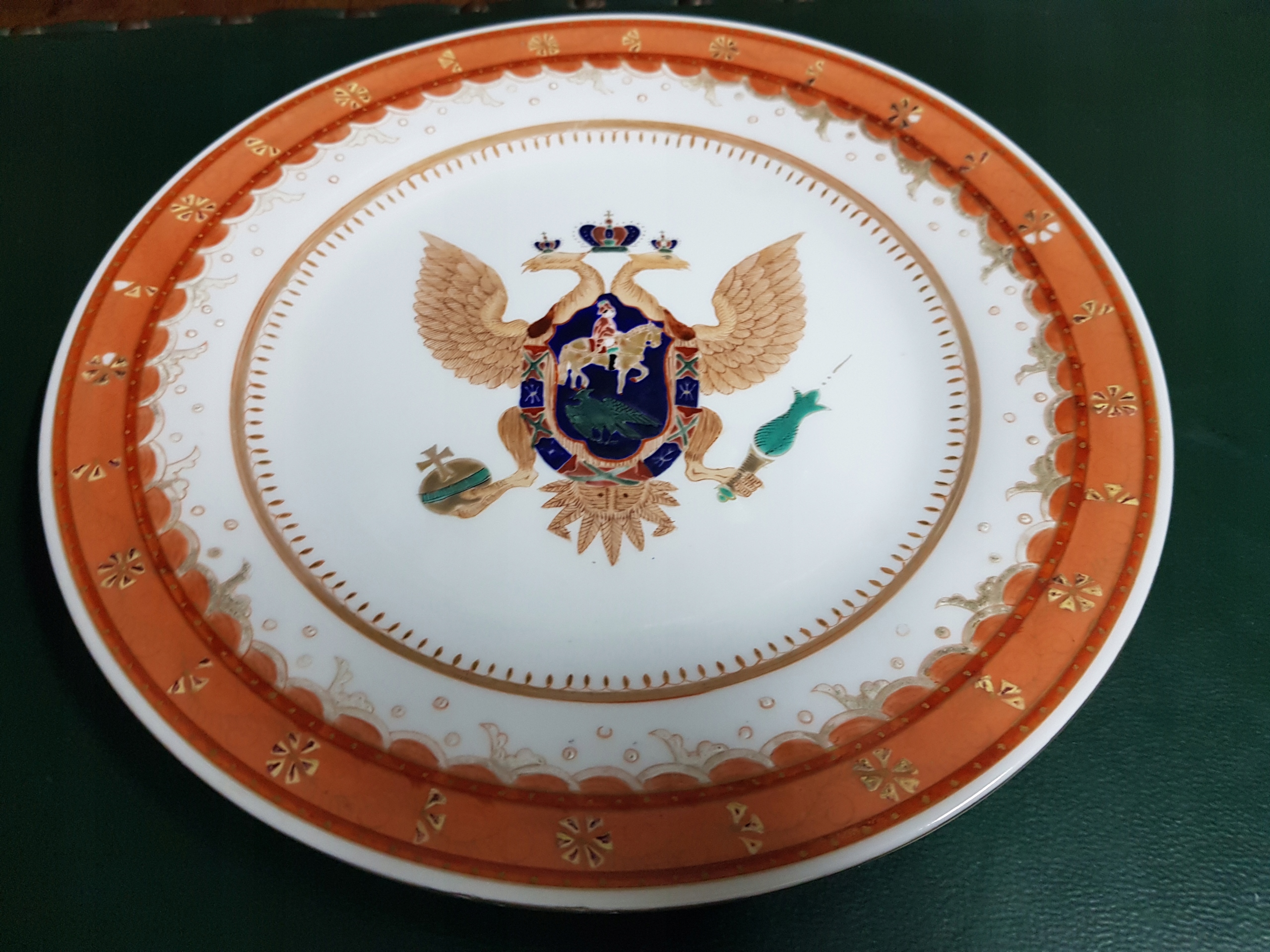 Предмет аукциона — тарелка с расписанным вручную Царским орлом.2