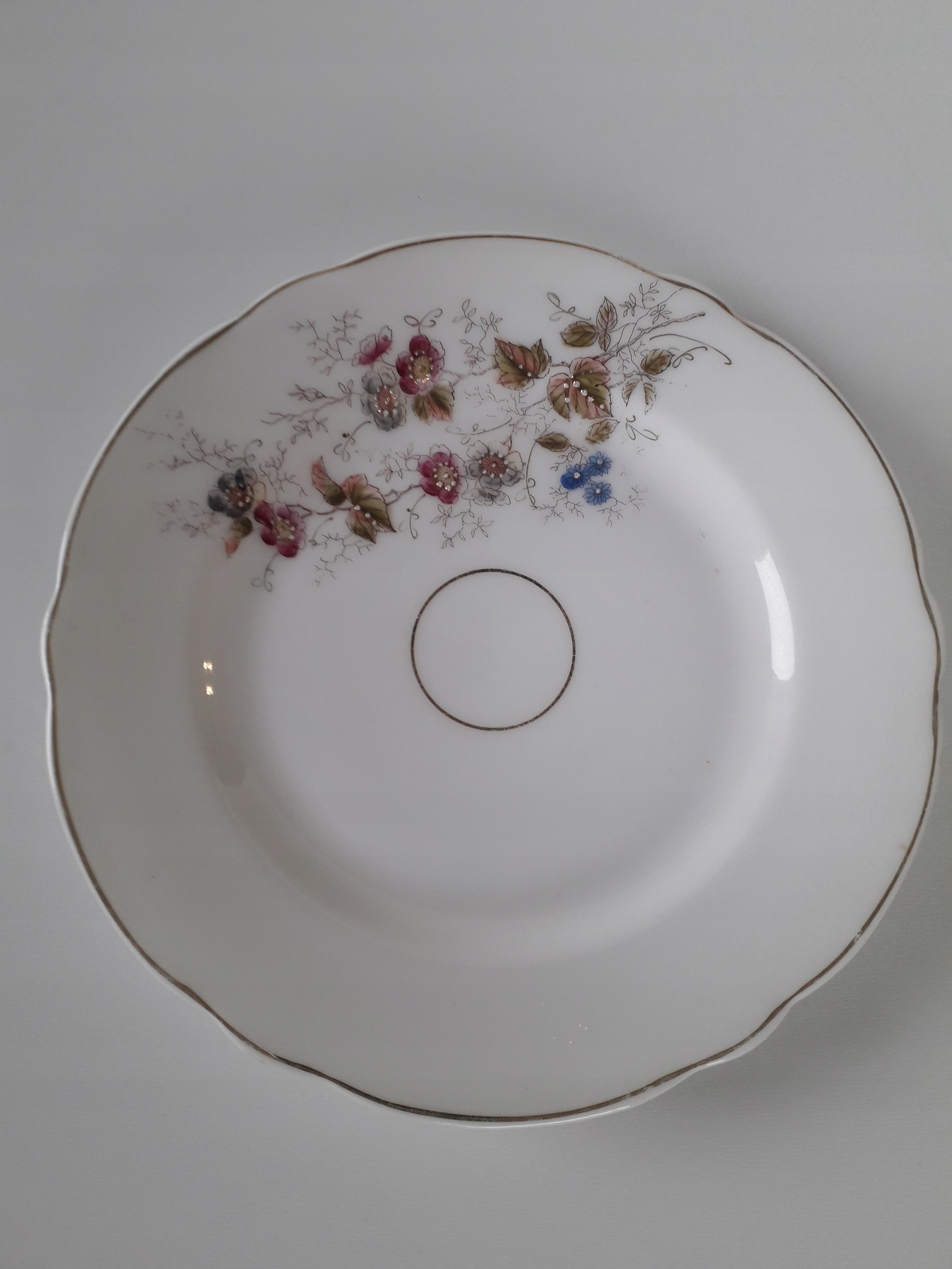 Десертная тарелка KOENIGSZELT JAWORZYNA, диаметр 18 см, высота 2,4 см, вес 0,20-0,25 кг. Все они не имеют дефектов и царапин, кое-где на внешних золотых полосах можно увидеть очень легкие потертости, но совсем не похожи на белый фарфор. Учитывая возраст пластин, состояние очень хорошее. Товарный код 2005.