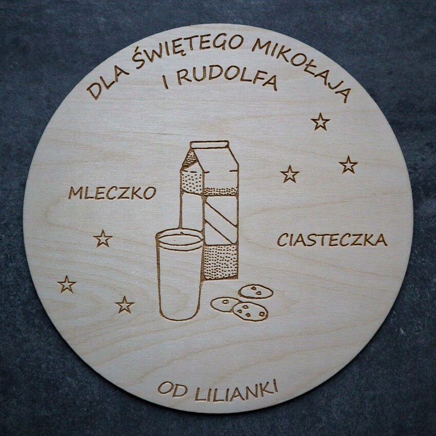 Деревянная тарелка для Деда Мороза - гравировка любого имени(имен) ребенка