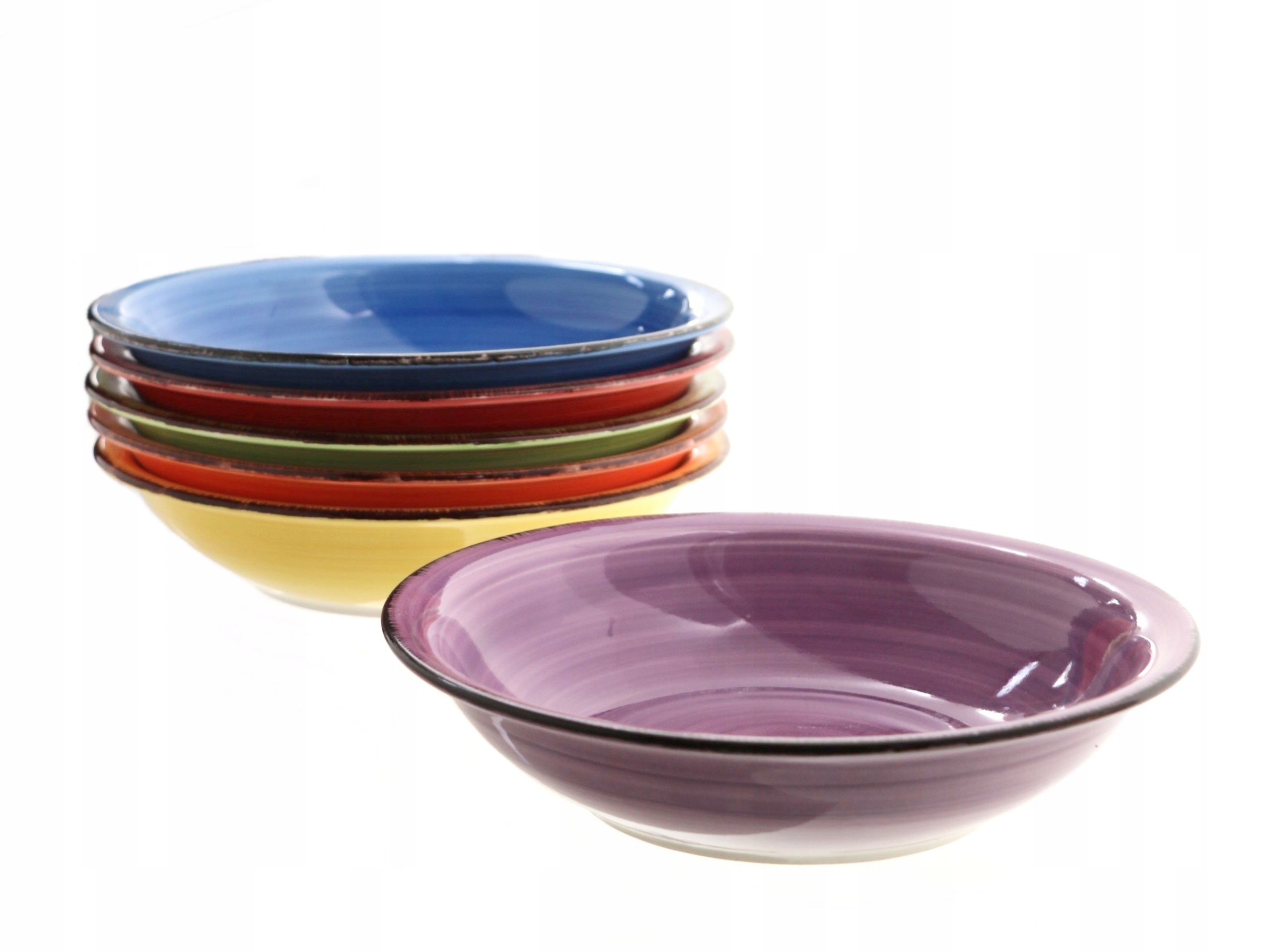 Красивые, красочные, керамические суповые тарелки в оттенках радужных цветов.