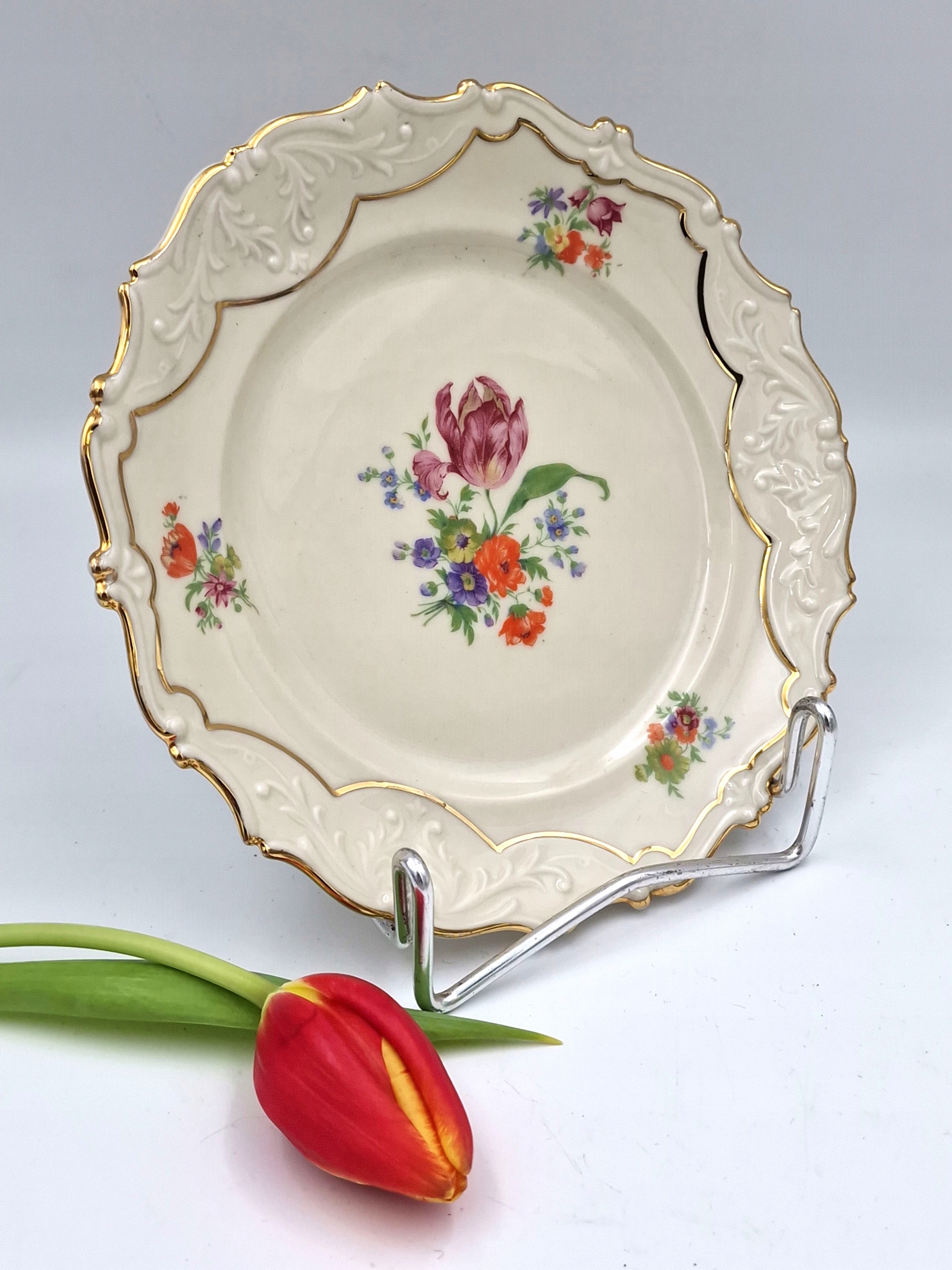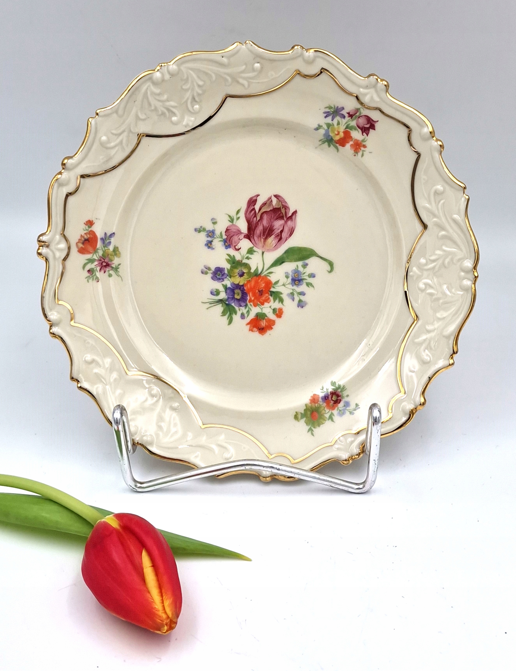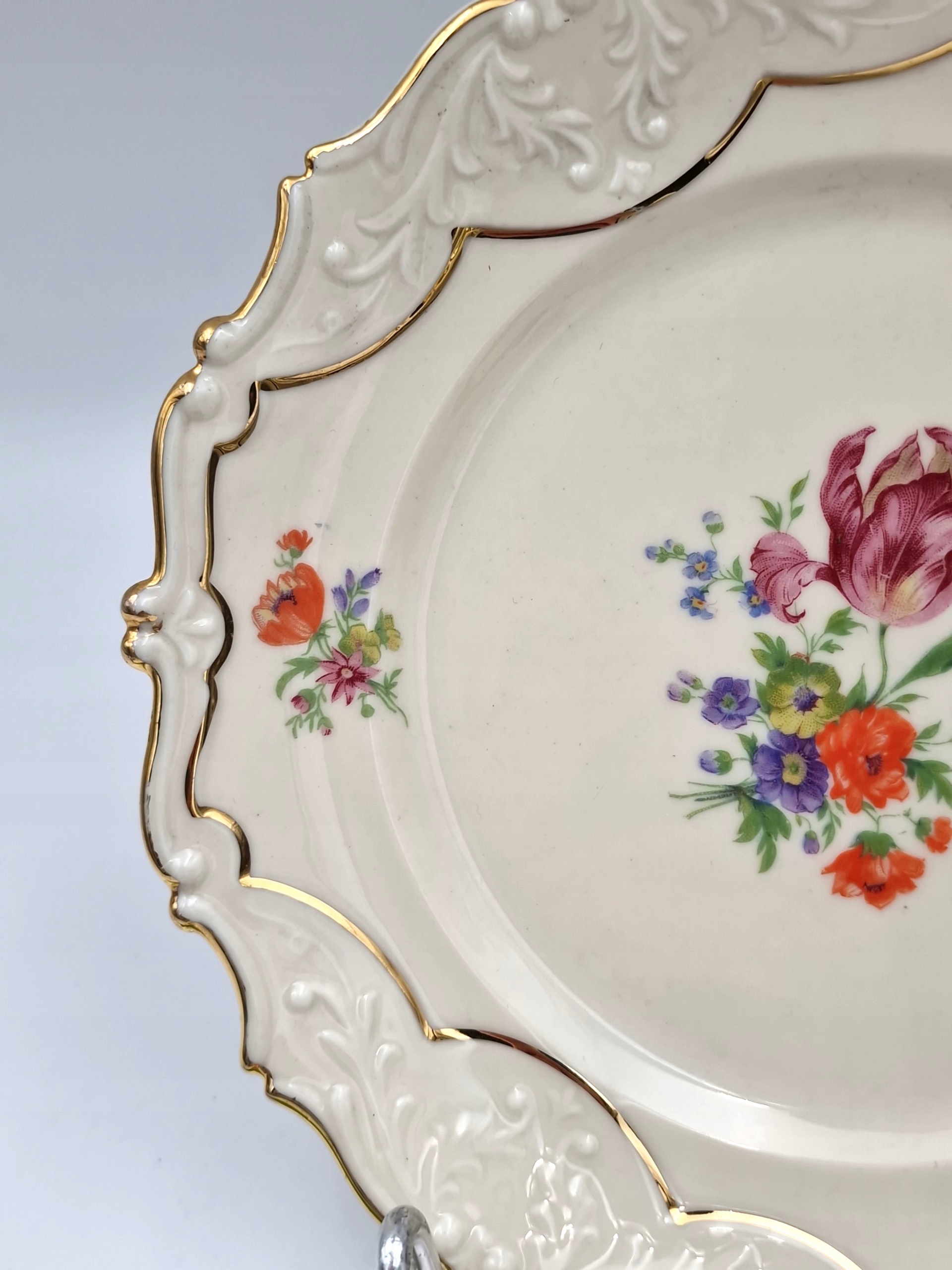 красивую тарелку - тарелку с РЕЛЬЕФАМИ, с декоративной позолотой и цветочным мотивом
