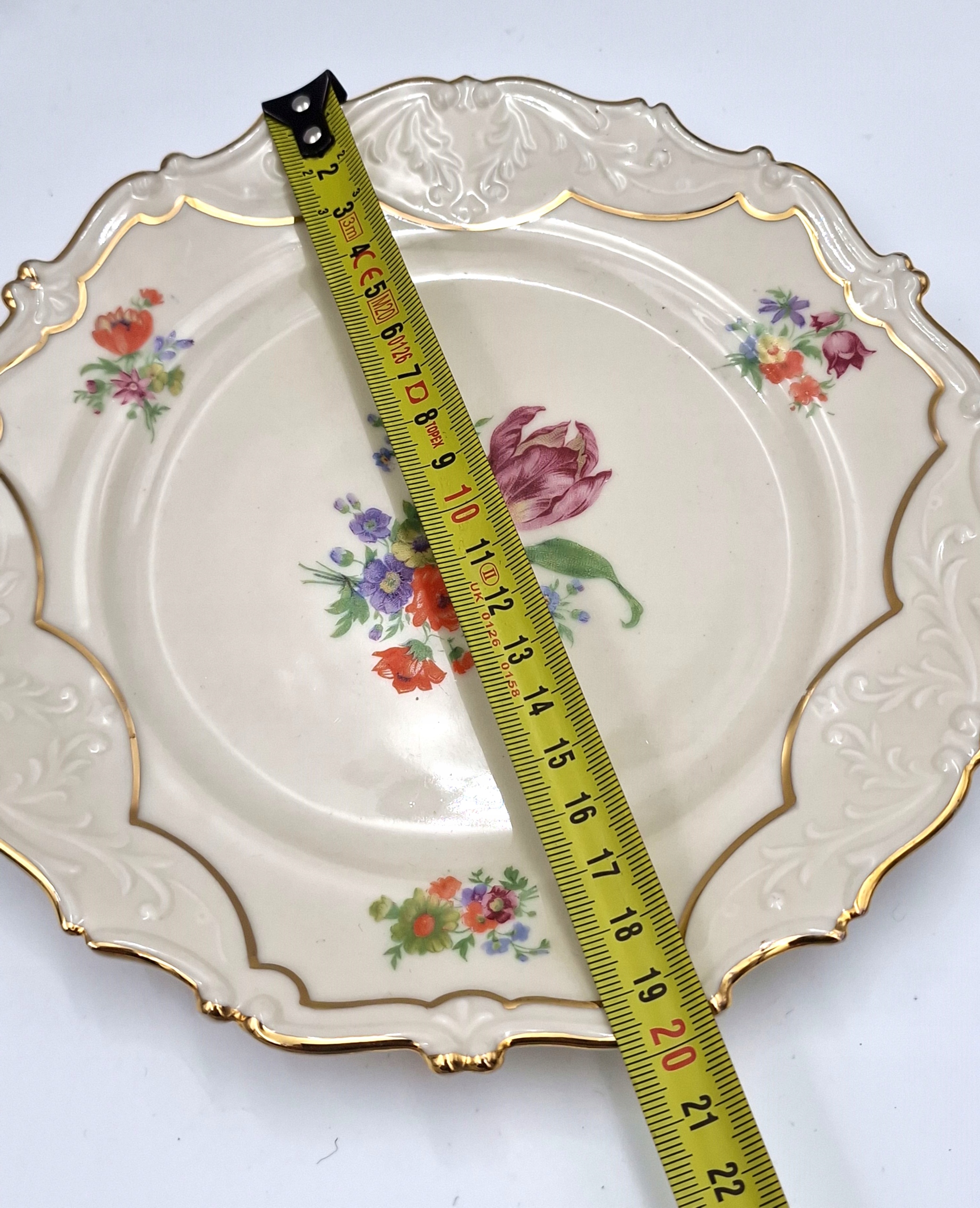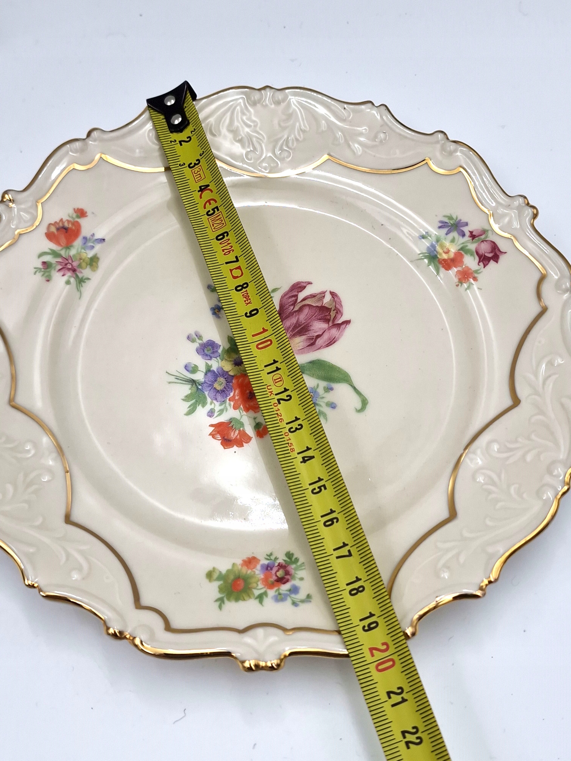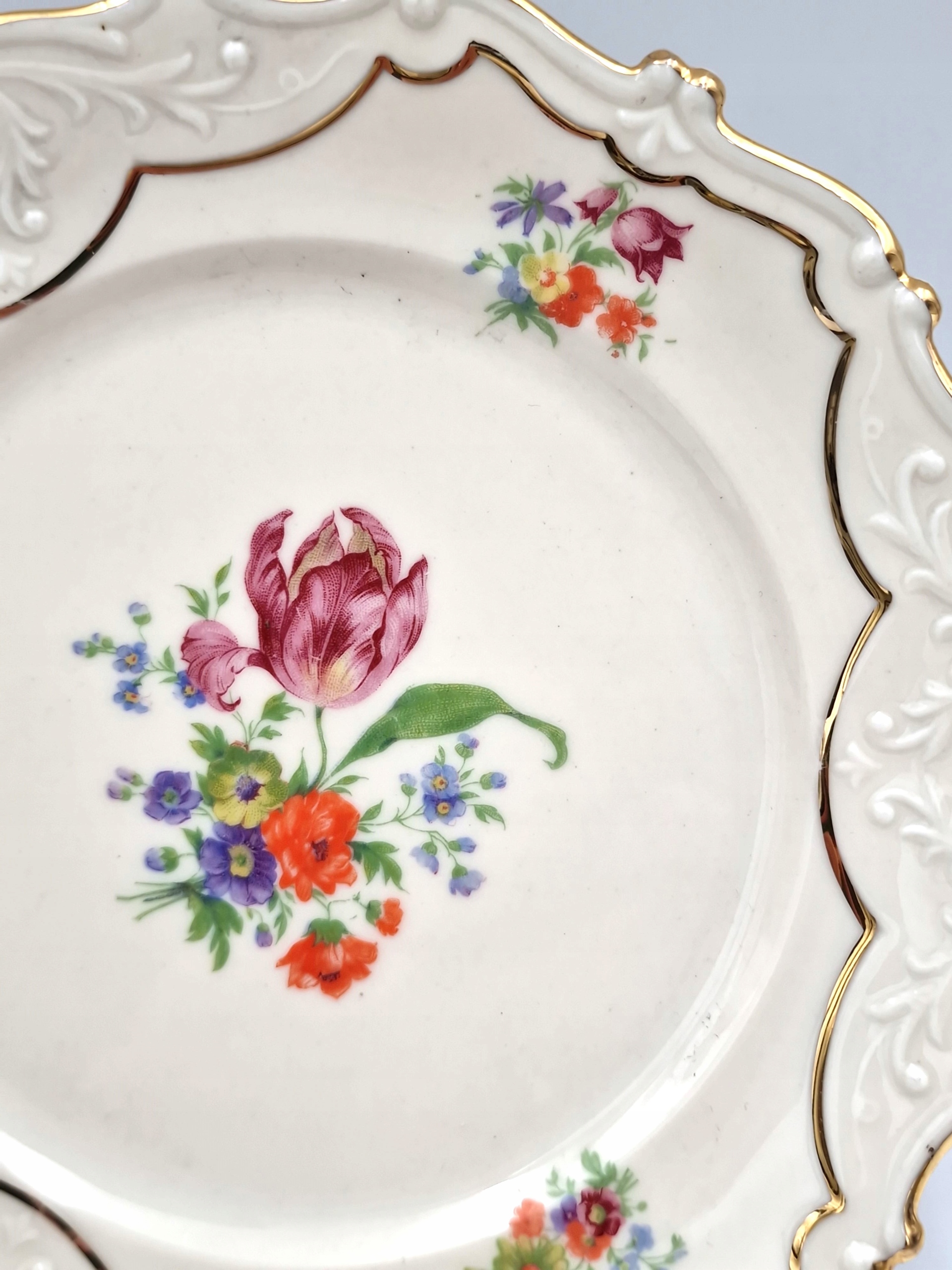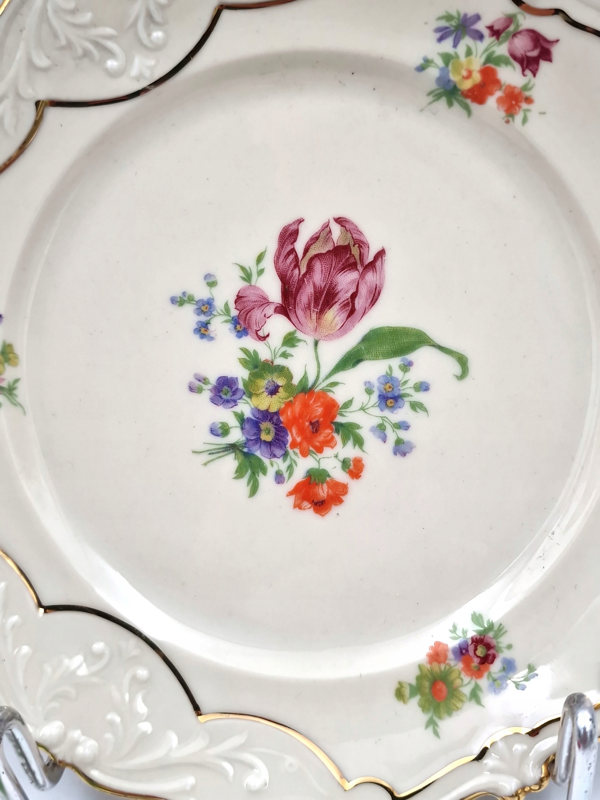 красивую тарелку - тарелку с РЕЛЬЕФАМИ, с декоративной позолотой и цветочным мотивом