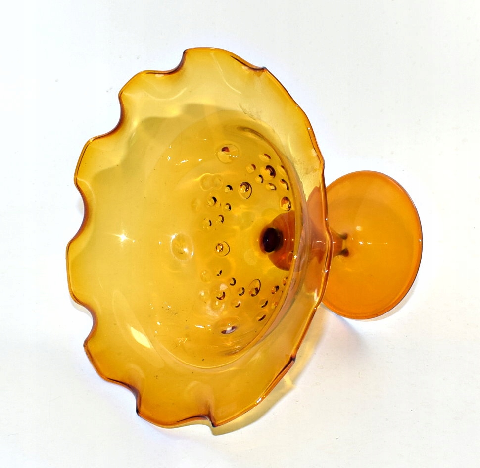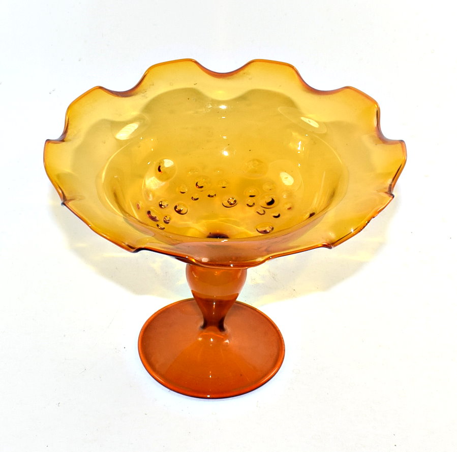 Красивая старинная тарелка на ножке. Хрустальное стекло, выдувное, деликатное, 1950-60-х годов, дизайн Лауши Альбина Шеделя. Безделка, окрашенная в стекло