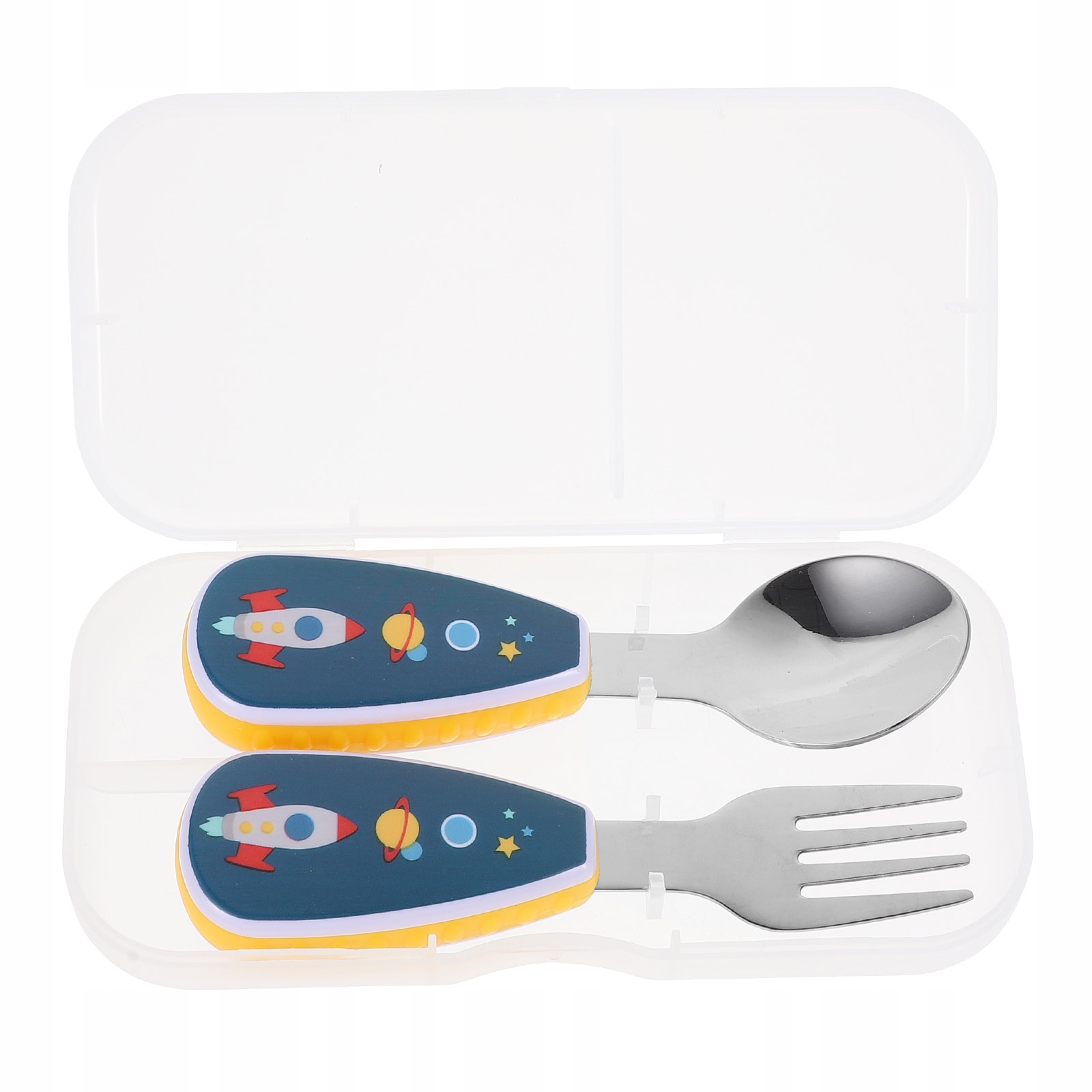 ✅Это набор ложек и вилок в коробке, изготовленный из высококачественной нержавеющей стали и пластика и специально разработанный для малышей. Он спроектирован так, как ребенок держит ложку, поэтому ему намного легче с ним обращаться. Смело купите один комплект своему ребенку.