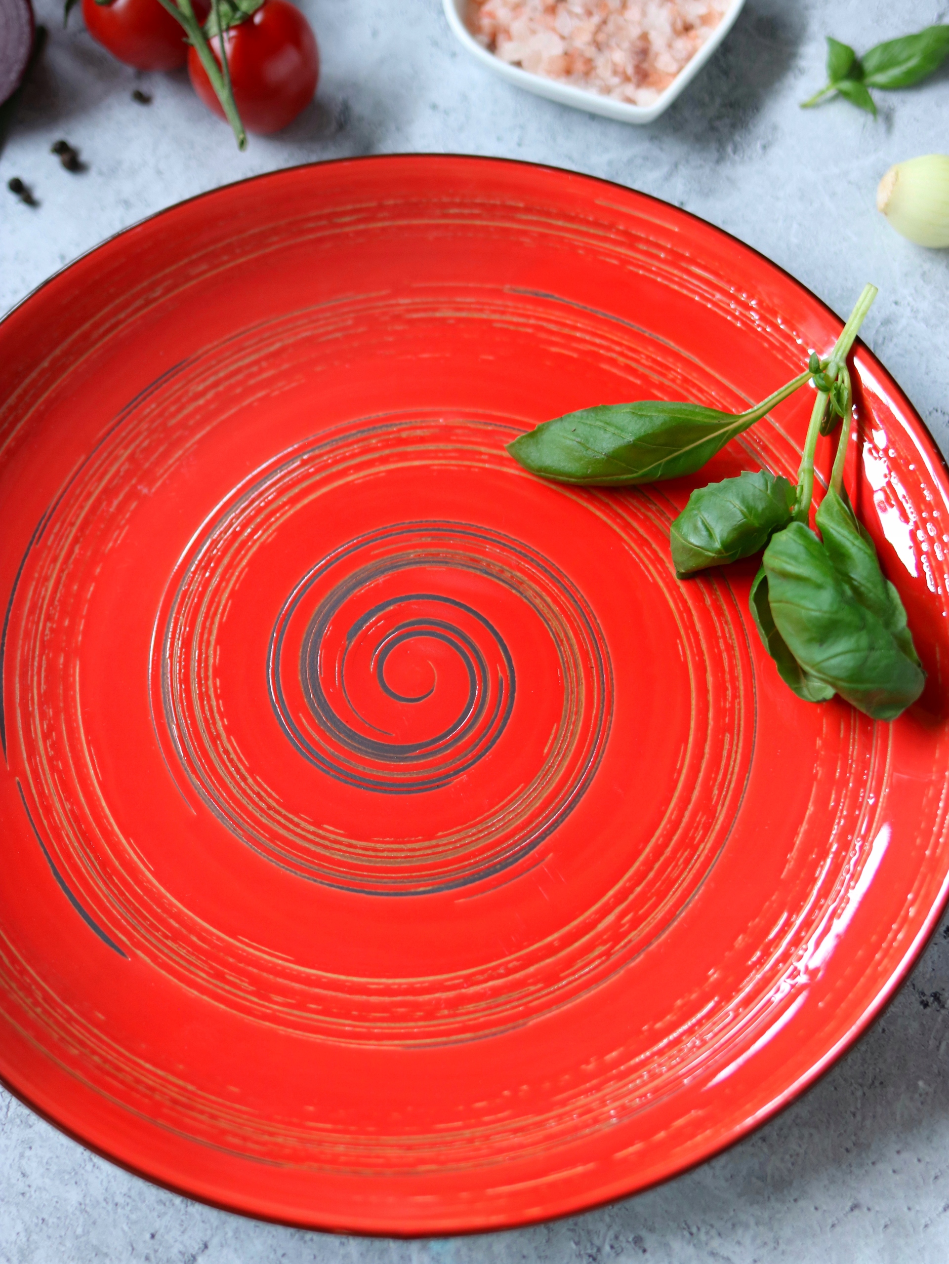 Красочная тарелка для салатов, вторых блюд или десертов.