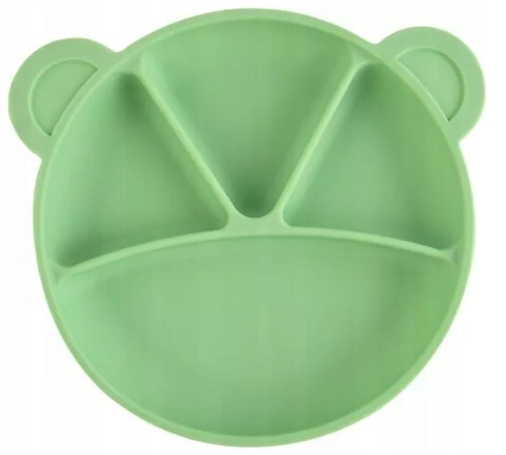 СИЛИКОНОВАЯ ТАРЕЛКА, ТАРЕЛКА TEDDY BEAR С ЗЕЛЕНОЙ КРЫШКОЙ