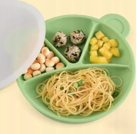 Силиконовая тарелка с отделениями в форме головы мишки с крышкой!