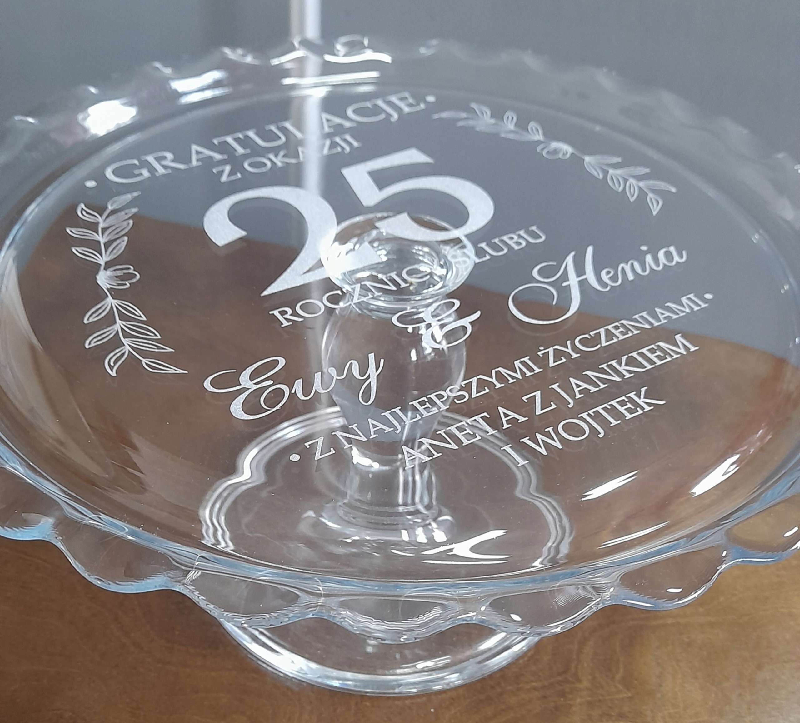 СТЕКЛЯННАЯ ТАРЕЛКА ДЛЯ ТОРТА С ГРАВИРОВКОЙ НА ПОДАРОК