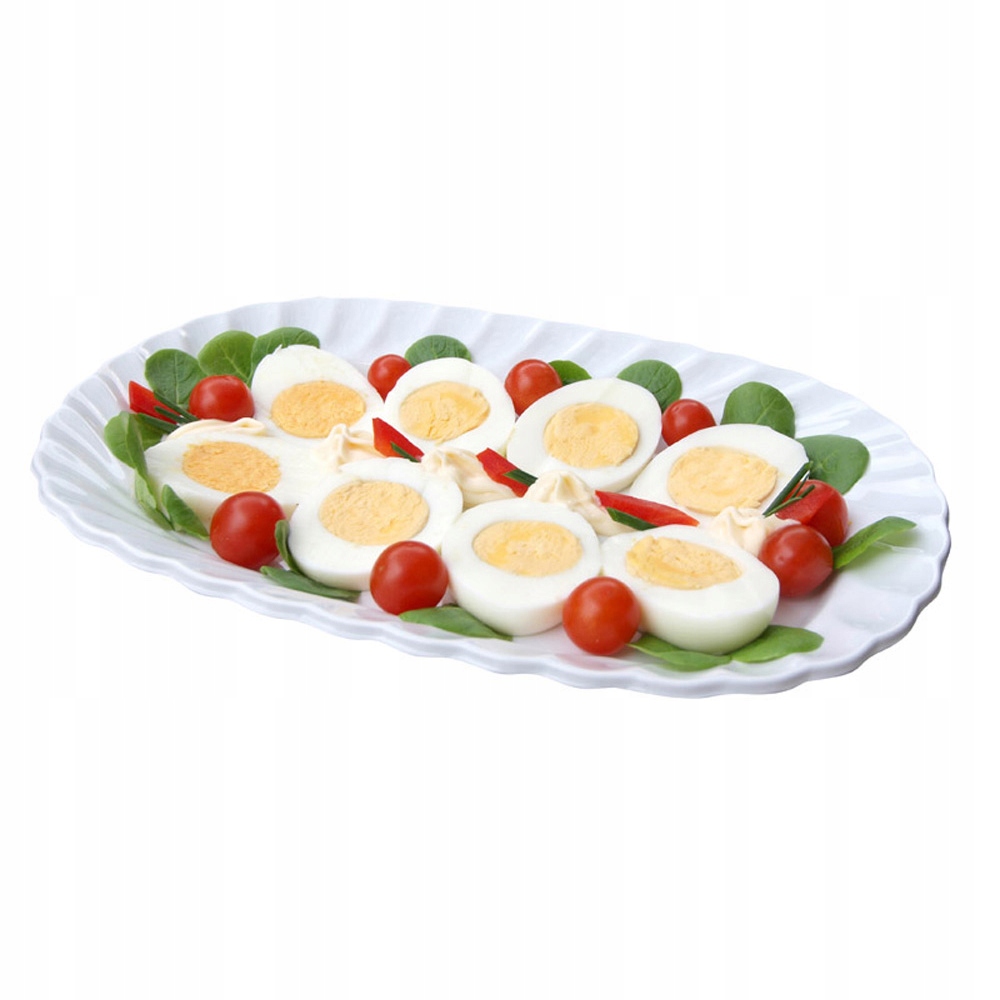 На тарелке имеется 8 углублений для яиц и место для дополнительных яиц, соуса или посыпки.