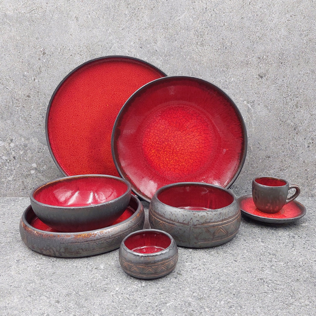 Серия Рубин Кера Керамика — это линейка красных сосудов, украшенных глазурованными трещинками. Глубокий красный цвет интересно контрастирует с коричневым оттенком. Рубин идеально подходит для гастрономии: ресторанов, отелей, гостиниц или пиццерий.