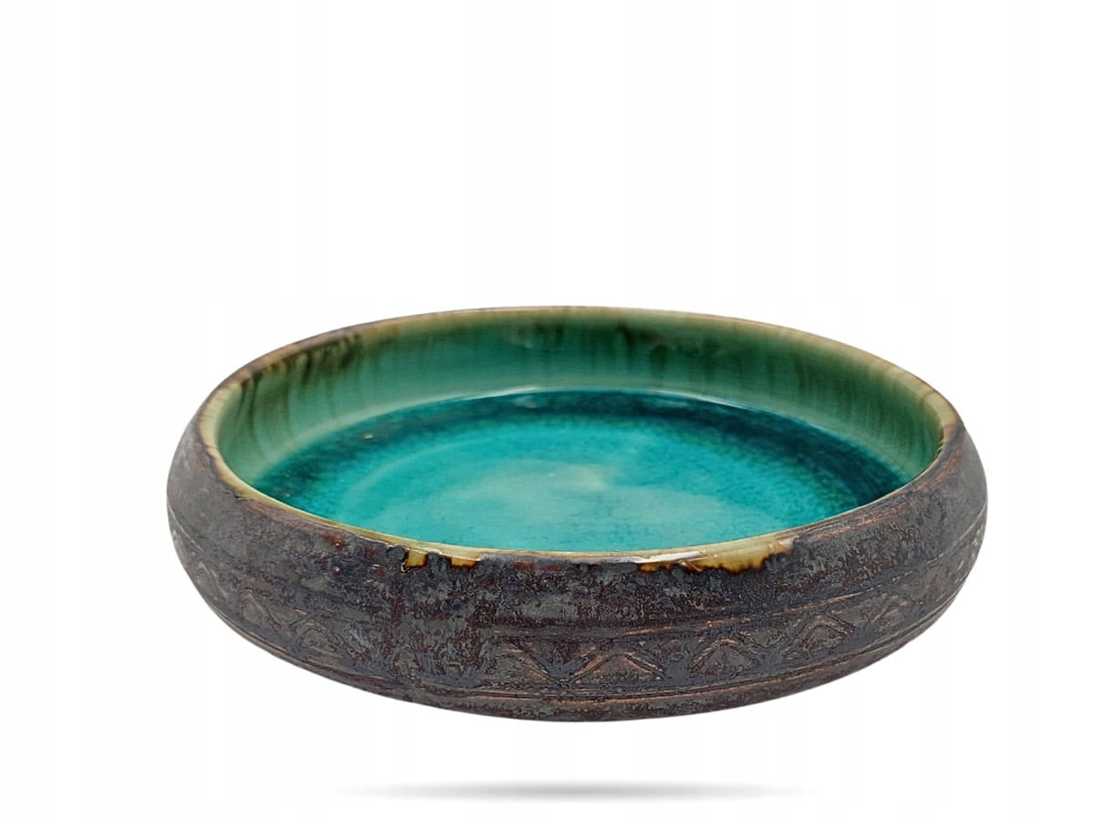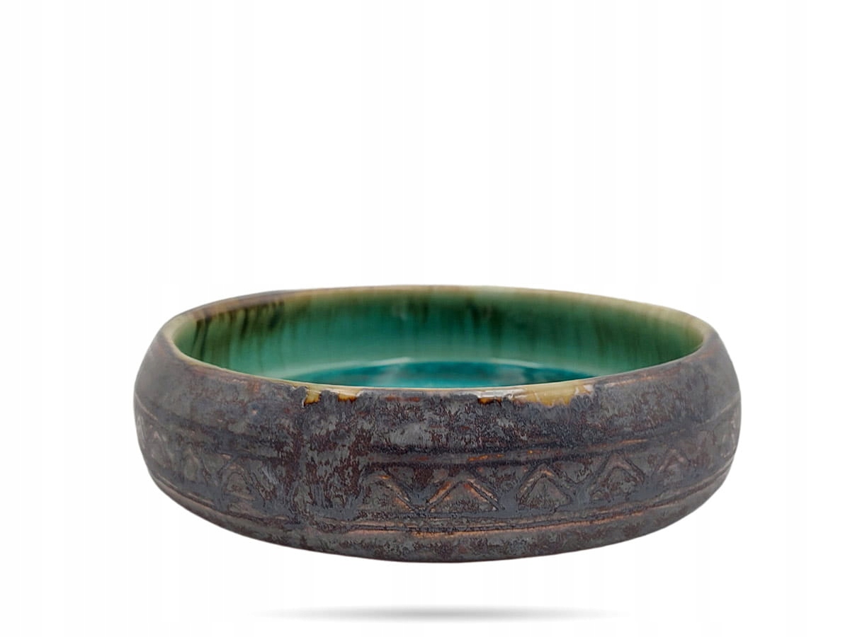 тарелка с изумрудной керамикой из изумрудного края. Натуральные оттенки коричневого и глубокого, глазированного, изумрудного цвета внутренней части придают сосуду уникальный характер. Керамика Идеально подходит для ресторана, отеля или кафе.