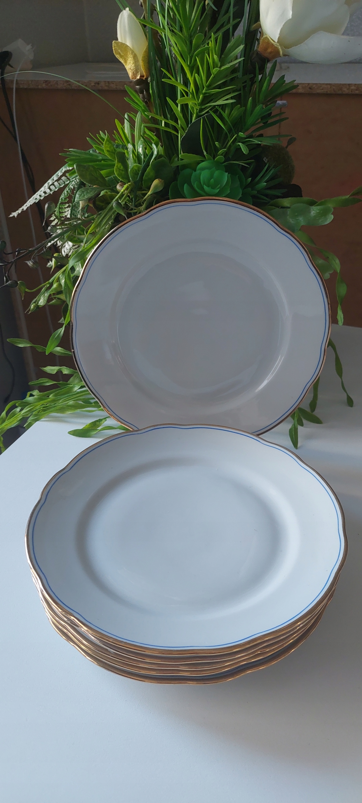 Шесть белых тарелок диаметром 19 см.