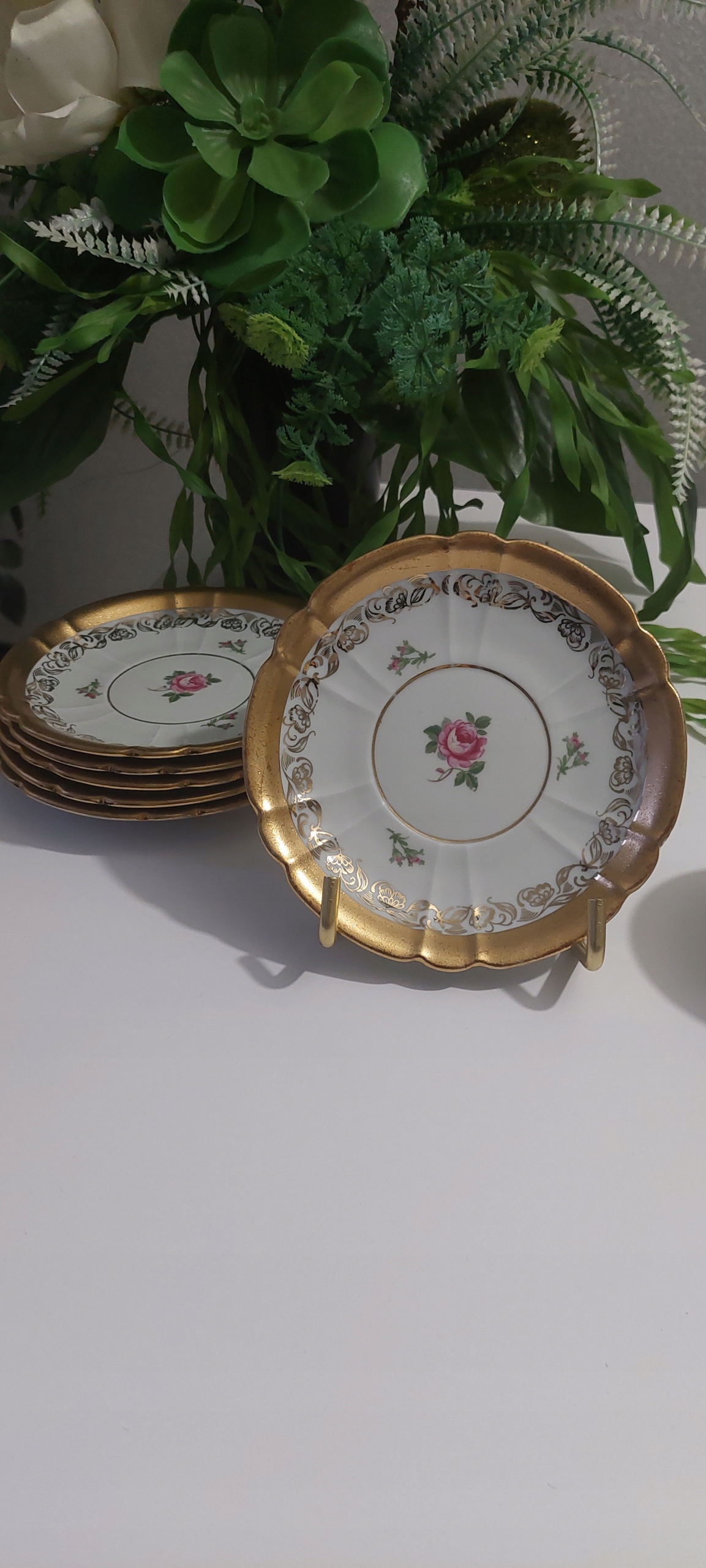 Шесть богато позолоченных тарелок диаметром 15 см.