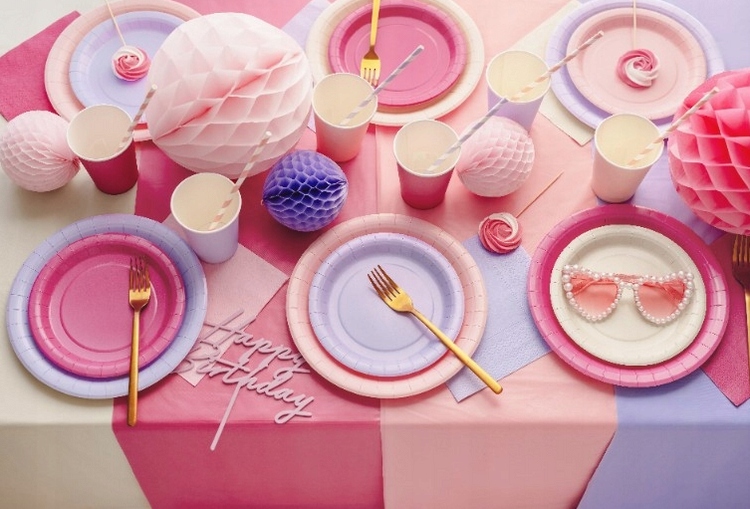 Бумажные тарелки светло-розового цвета идеально сочетаются с различными украшениями и тематикой вечеринки. Их можно использовать как во время детских дней рождения, так и взрослых встреч в саду или на балконе. Их круглая форма и практичный размер облегчают подачу блюд, а легкая конструкция придает столу эстетичный и красочный вид.