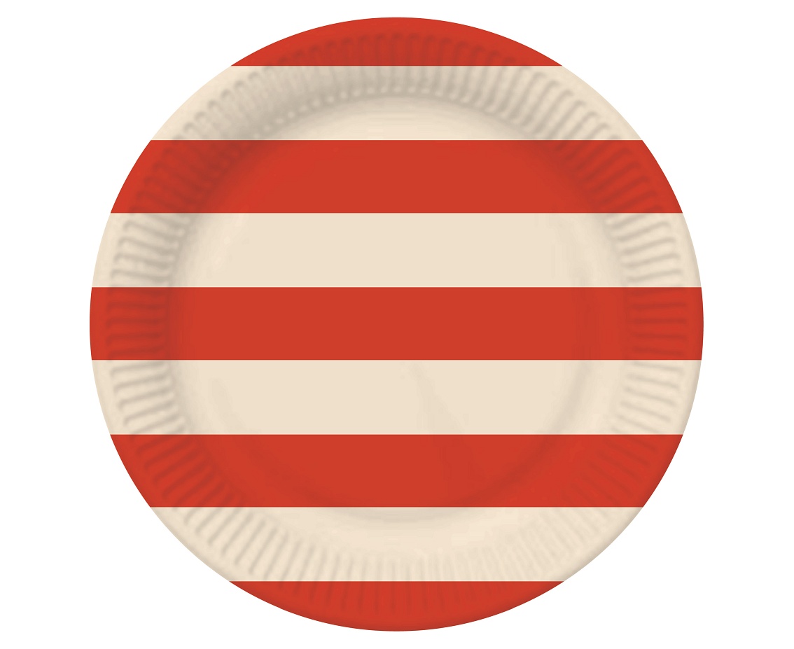 ТАРЕЛКИ БУМАЖНЫЕ ТАРЕЛКИ В ПОЛОСКУ КРАСНЫЕ И БЕЖЕВЫЕ 18 см 6 шт.