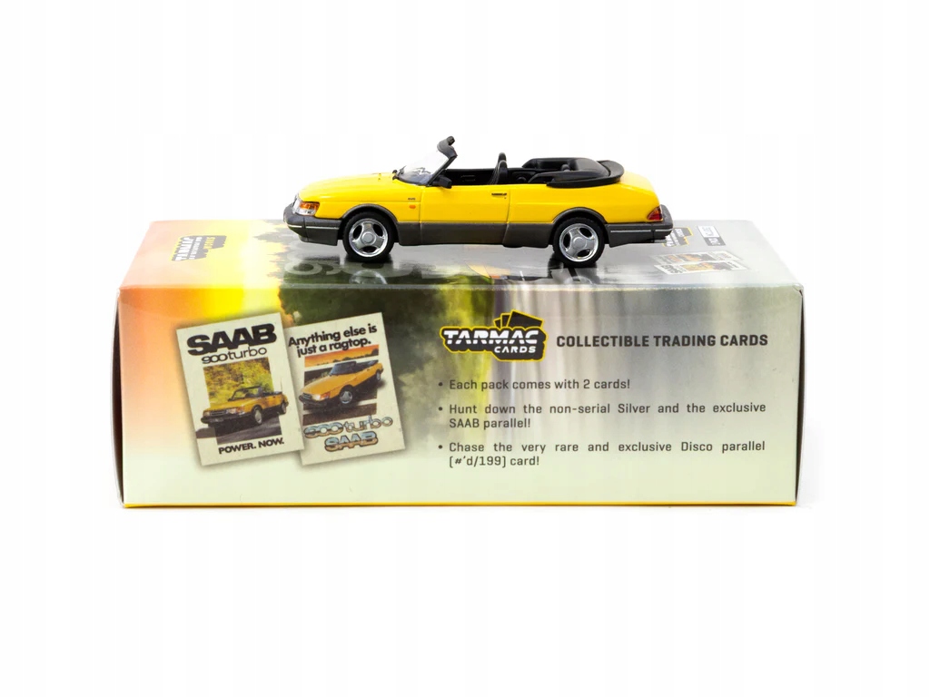 TARMAC SAAB 900 Turbo Convertible, желтый, с коллекционными карточками 1:64