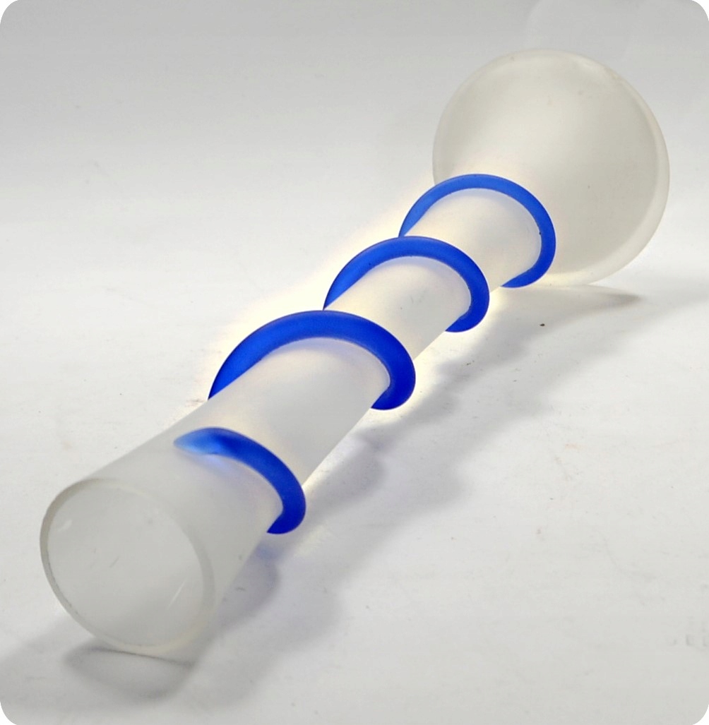 Чудесная, необычная - красивый дизайн, оригинальная форма и чудесные, оригинальные цвета - белое стекло - травленое, со стеклянной нитью кобальтово-синяя - толстая.