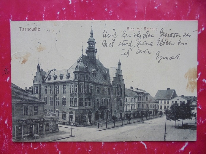 ТАРНОВСКИЕ ГОРЫ РЫНОК ТАРНОВИЦ РЫНОК РАТУШНАЯ АПТЕКА ИЗ ОБРАЩЕНИЯ 08.06.1916 СОСТОЯНИЕ НА ИЗОБРАЖЕНИИ КРАСИВАЯ ОТКРЫТКА ИЗ ЭПОХЫ ВОЗМОЖНОСТЬ ОПЛАТЫ ТРАДИЦИОННЫМ ПЕРЕВОДОМ BANK SLĄSKI