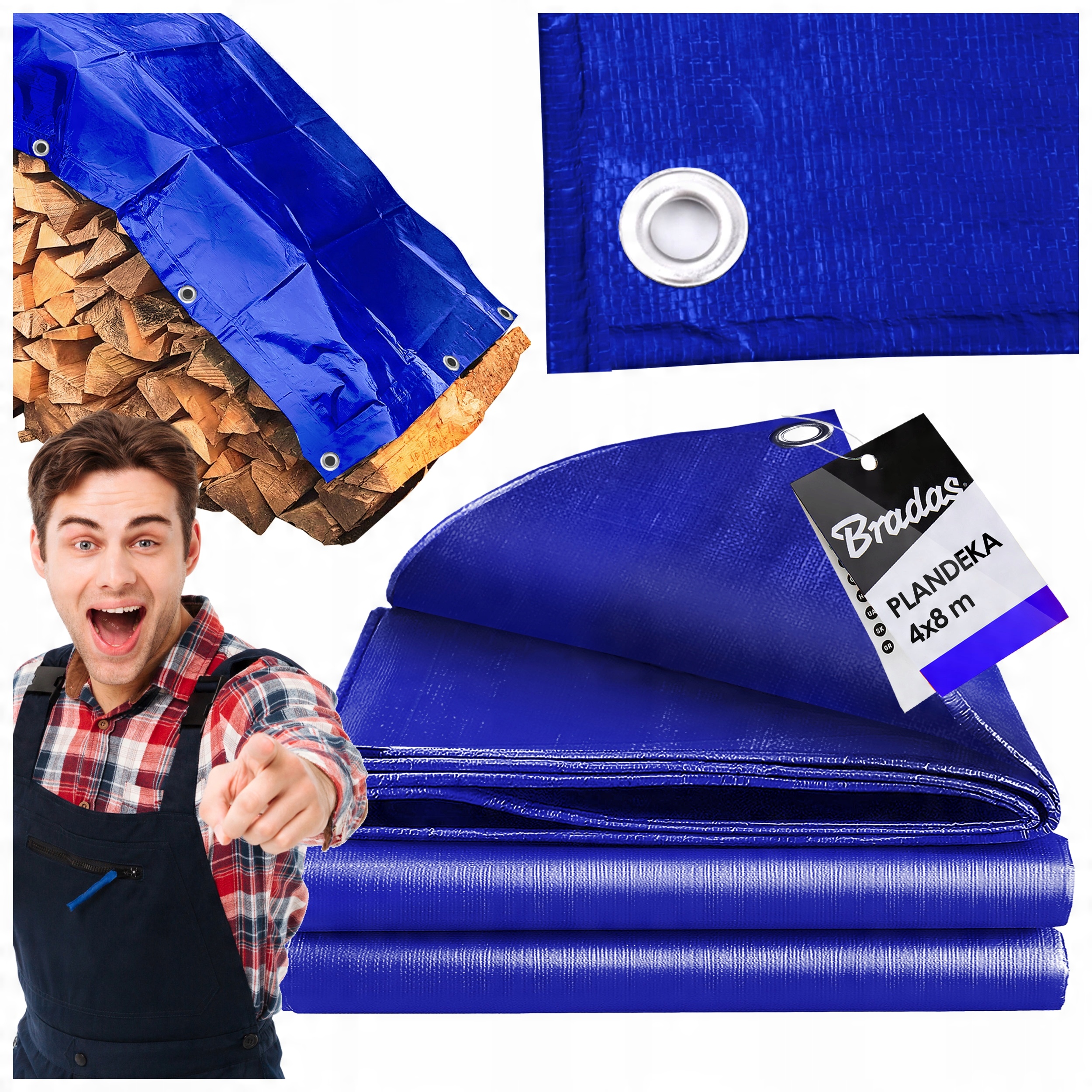 ✨ БРЕЗЕНТ ДЛЯ ТЕРРАСЫ ТОЛСТЫЙ СИНИЙ ПРОЧНЫЙ водонепроницаемый 4x8м 50г/м2 от Bradas✨