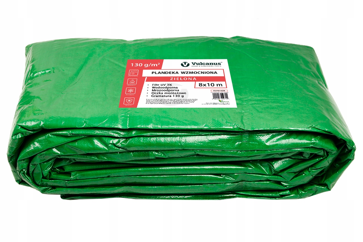 Жирный тарпаулин Vulcanus®, 8x10M - Вес 130 г/ м2, зеленый h1> усиленный, защитный, водонепроницаемый, армированный h1>