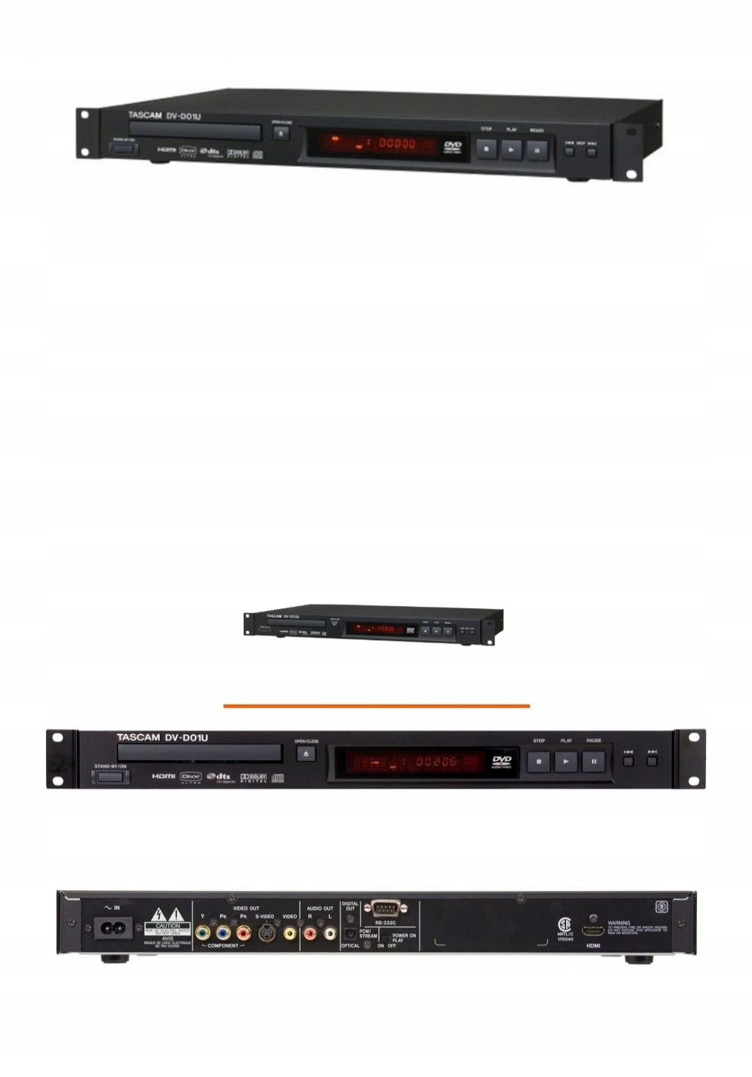 Tascam DV-D01U-это однодисковый игрок в очереди с HDCP, помещенным в корпус стойки 1U с выдвижным привязкой на тарелке.
