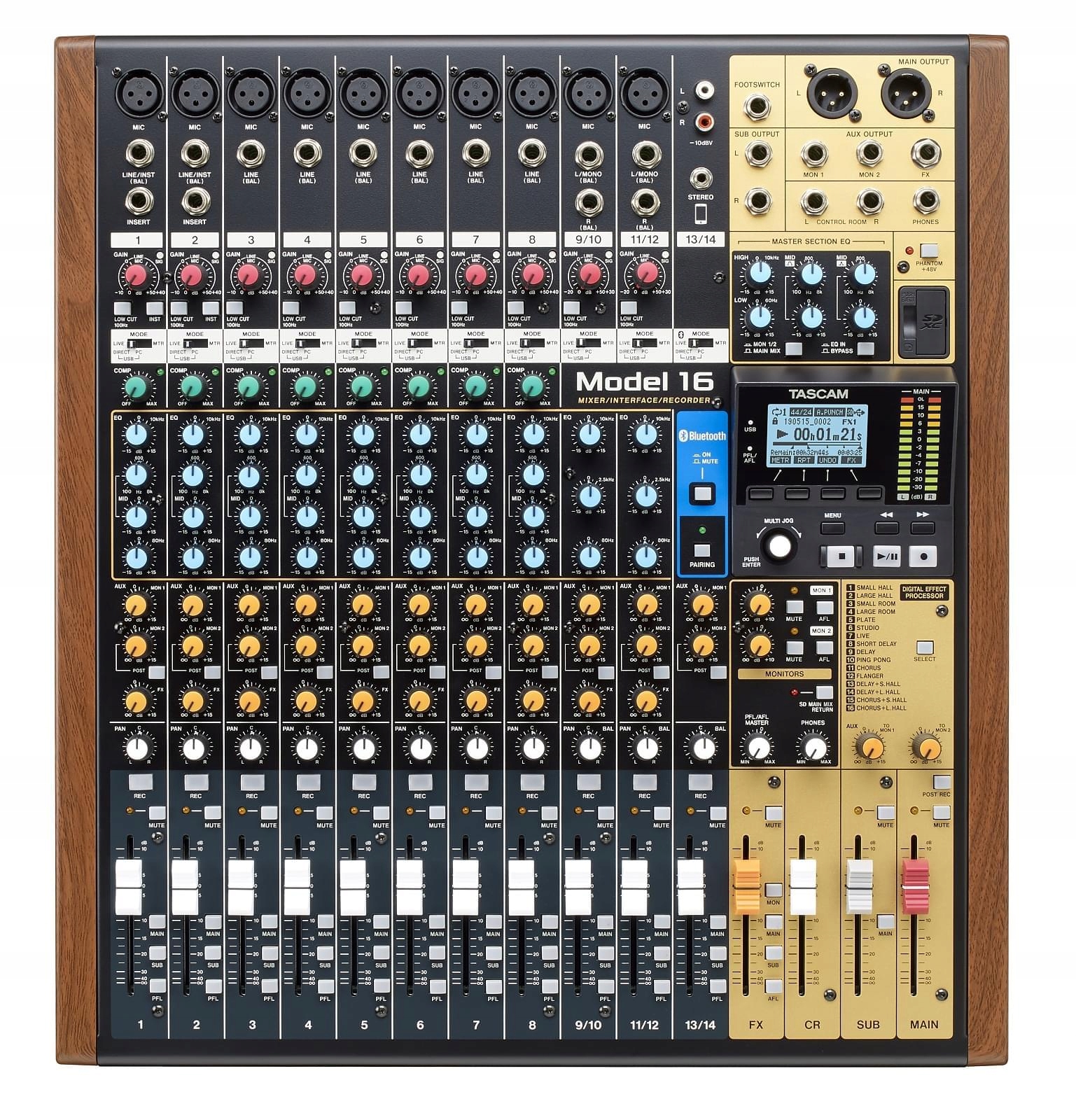 Микшер «все в одном» Tascam Model 16 выводит расширенные функции записи и микширования флагманской модели 24 на новый, доступный уровень, создавая полнофункциональный компактный микшер, сочетающий в себе аналоговое тепло с цифровыми возможностями. Модель 16 — идеальное решение для микширования небольших живых выступлений, записи и производства благодаря многодорожечному рекордеру, аудиоинтерфейсу USB, эффектам, комплексным возможностям микширования и маршрутизации, а также беспроводному подключению Bluetooth.