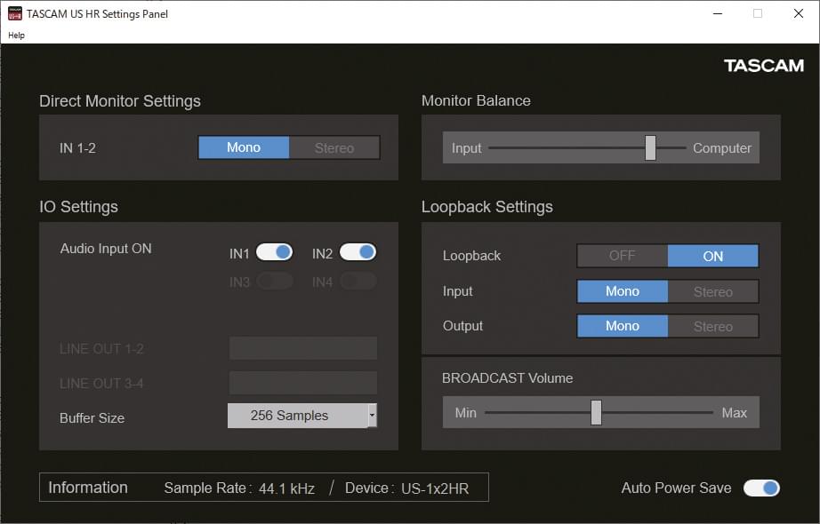 US-1x2HR — самый маленький представитель серии USB-аудиоинтерфейсов высокого разрешения Tascam US-HR. Он имеет один микрофонный и один инструментальный вход и поэтому особенно рекомендуется для простой и интуитивно понятной записи гитары/вокала на компьютере. Он имеет функцию обратной связи и поддерживает программное обеспечение Open Broadcaster Software (OBS Studio), что также делает его отличным выбором для создания подкастов и прямых трансляций. Наконец, это также отличный способ объединить музыку с вашего компьютера с высококачественной звуковой системой, например, на вечеринке.