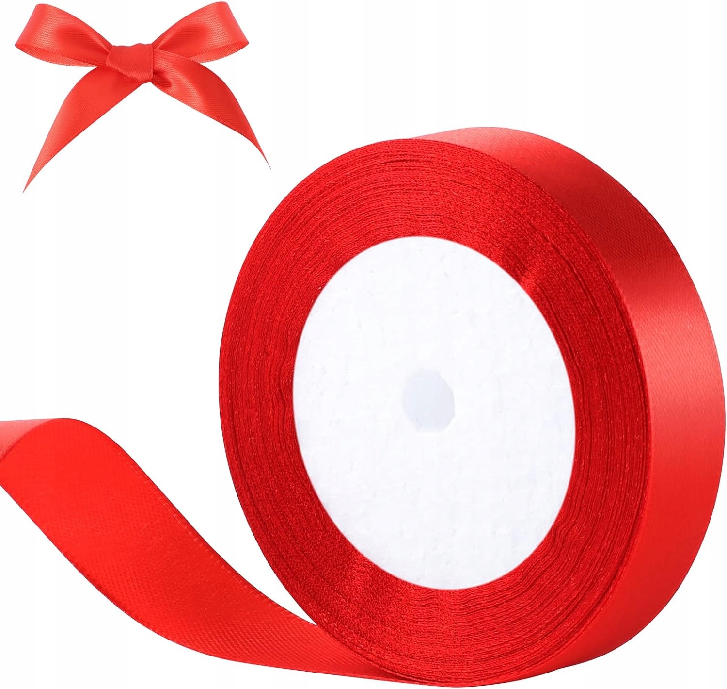 TASIEMKA TAŚMA WSTĄŻKA SATYNOWA ATŁASOWA 25MM 25M CZERWONA PREZENT ŚWIĘTA