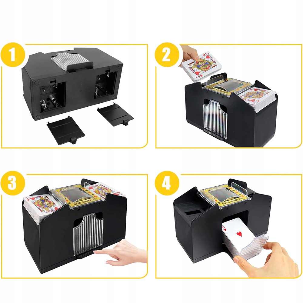 ♠️♠️Подходит для различных карт: Этот тасователь очень гибок и стабилен в работе. Вмещает карты стандартного размера и до 4 колод карт. Идеально подходит для самых разных игр: от покера, холдема и блэкджека до карточных игр.