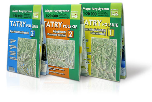 Третья карта показывает район польских Высоких Татр, а на другой стороне листа туристическая информация о польской части Высоких Татр, история Татр, Национальный парк Татры, также есть панорама с По Среднего Граната, панорама с Рыс, а также курс Орла Перч с информацией о рекомендуемом направлении .