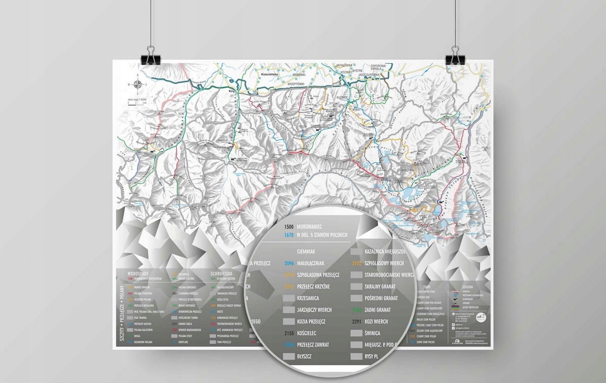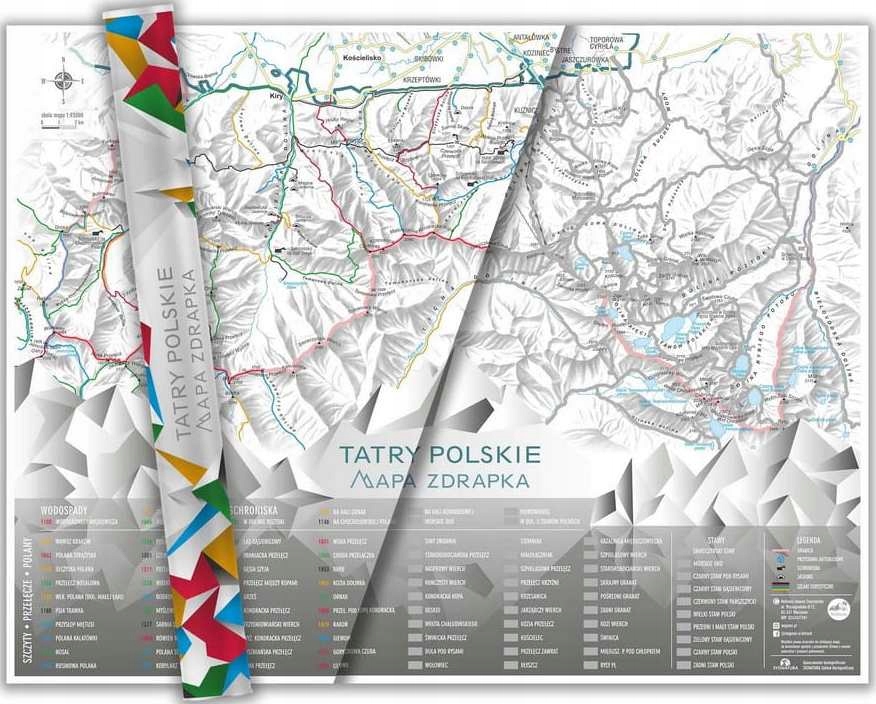 Карта в масштабе 1: 93 000 находится на листе, и вы найдете все маршруты в польских татрах с общей длиной 275 км. Для царапин до 90 ключевых мест польского продукта Tatra Mountains: