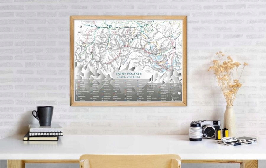 Польские горы Татры - Высокое карту - это идеальный способ документировать все посещенные тропы на татрах и праздновать горные завоевания. Это единственная карта царапин в Польше, которая включала не только тропы татры, но и список ключевых мест: пики, проходы, пруды.