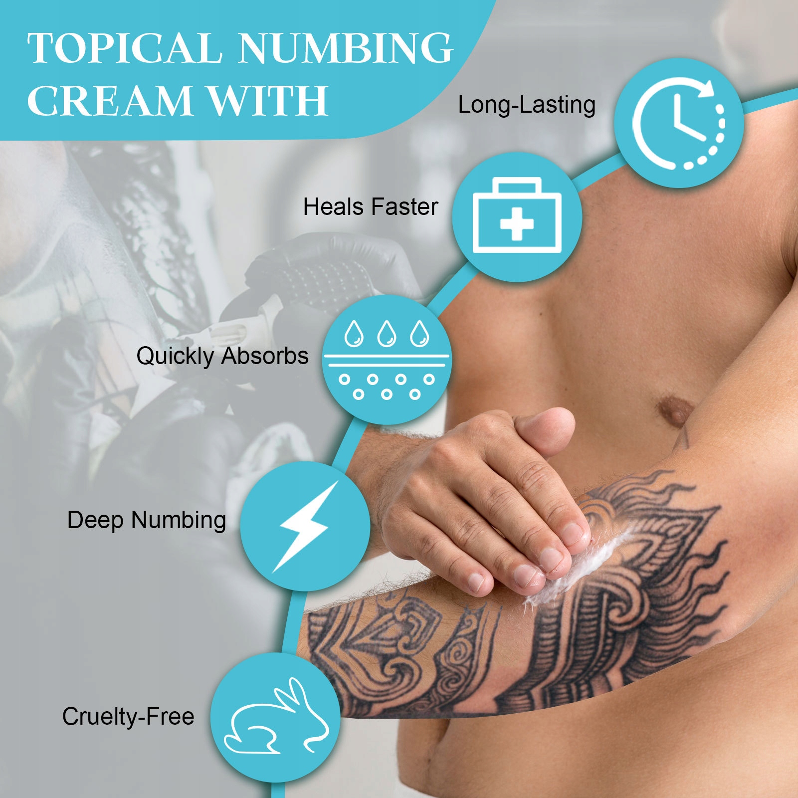 Предназначен для татуировок: если вы все еще боитесь сделать татуировку или пирсинг своей мечты из-за боли, попробуйте наш безболезненный обезболивающий крем для татуировок. Длительный обезболивающий эффект гарантирует, что вы не остановитесь даже в середине татуировки. и можно удобно завершить весь процесс!