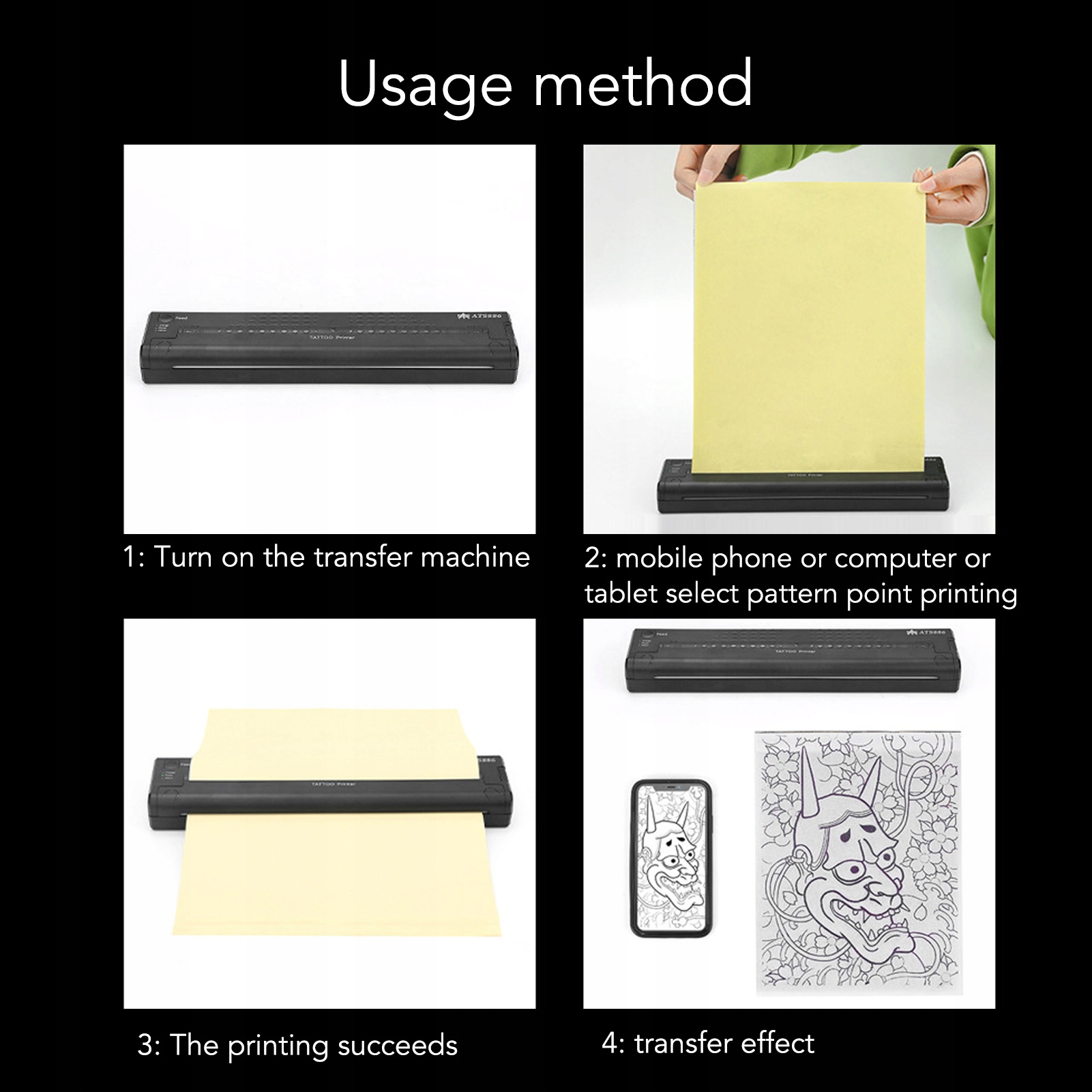 ⏹mini: корпус изготовлен из материала ABS, который легче и меньше старой трансферной машины. Tatuatorzy mogą go nosić ze sobą i nie zajmują miejsca. Просто подключите компьютер или мобильный терминал, выберите желаемый шаблон в приложении и отправьте шаблон татуировки через несколько секунд.
