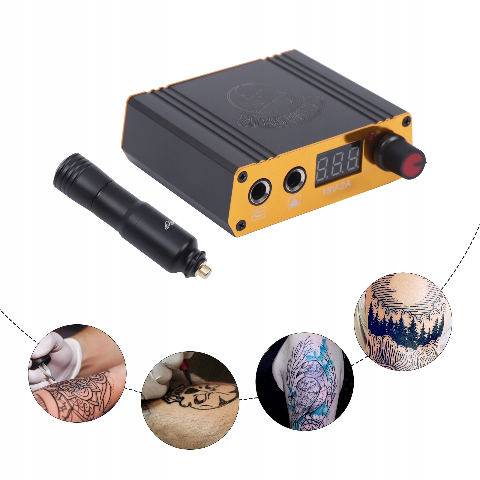 Вас беспокоит утомительный поиск полностью оборудованного набора для татуировок? Тогда этот набор для татуировок станет для вас идеальным выбором. Он содержит все, что вы будете использовать в процессе татуировки. Нежная и компактная тату-ручка из высококачественного алюминия и эффективный блок питания гарантируют стабильный процесс нанесения татуировки.