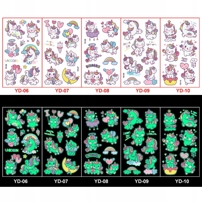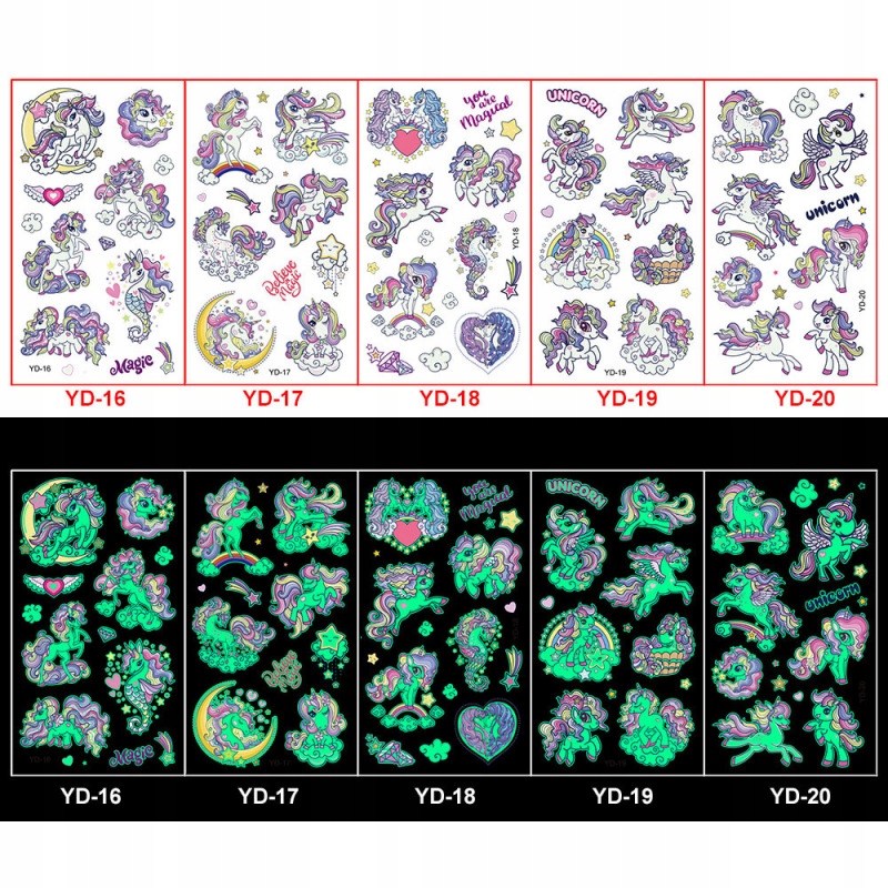 Tatuaże dla dzieci swiecace w ciemnosci Jednorożec Tymczasowe Zmywalne